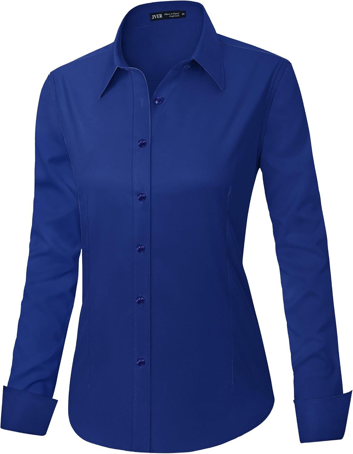 • J.VER Womens Dress Shirts Long Sleeve Button Down Shirt Wrinkle-Free Business Casual Blouse Office Work Tops(Royal Blue)