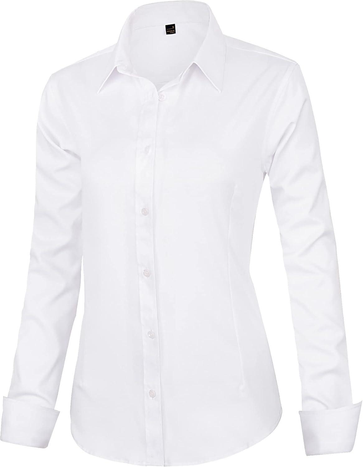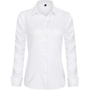 • J.VER Womens Dress Shirts Long Sleeve Button Down Shirt Wrinkle-Free Business Casual Blouse Office Work Tops(White)