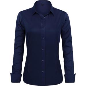 • J.VER Womens Dress Shirts Long Sleeve Button Down Shirt Wrinkle-Free Business Casual Blouse Office Work Tops(Navy Blue)