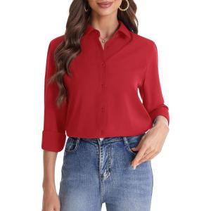 J.VER Women’s Button Down Shirt Long Sleeve Solid Dress Shirts Chiffon Work Office Blouse Fashion Formal Business Casual Tops(Red)