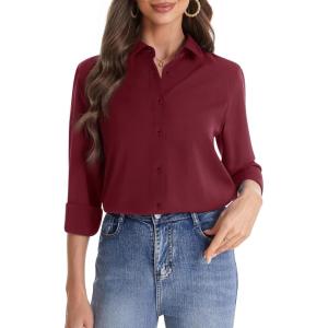 J.VER Women’s Button Down Shirt Long Sleeve Solid Dress Shirts Chiffon Work Office Blouse Fashion Formal Business Casual Tops(Wine Red)
