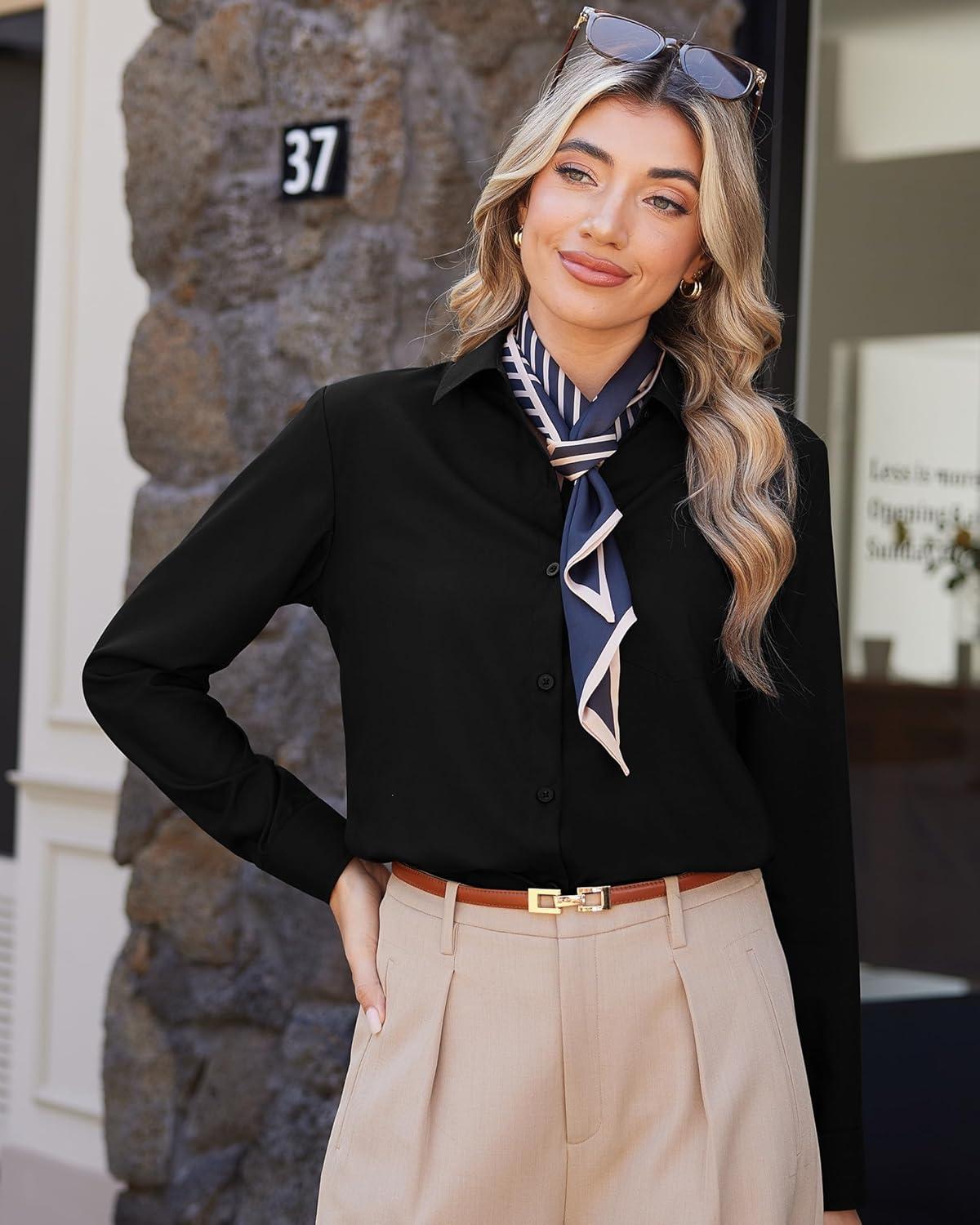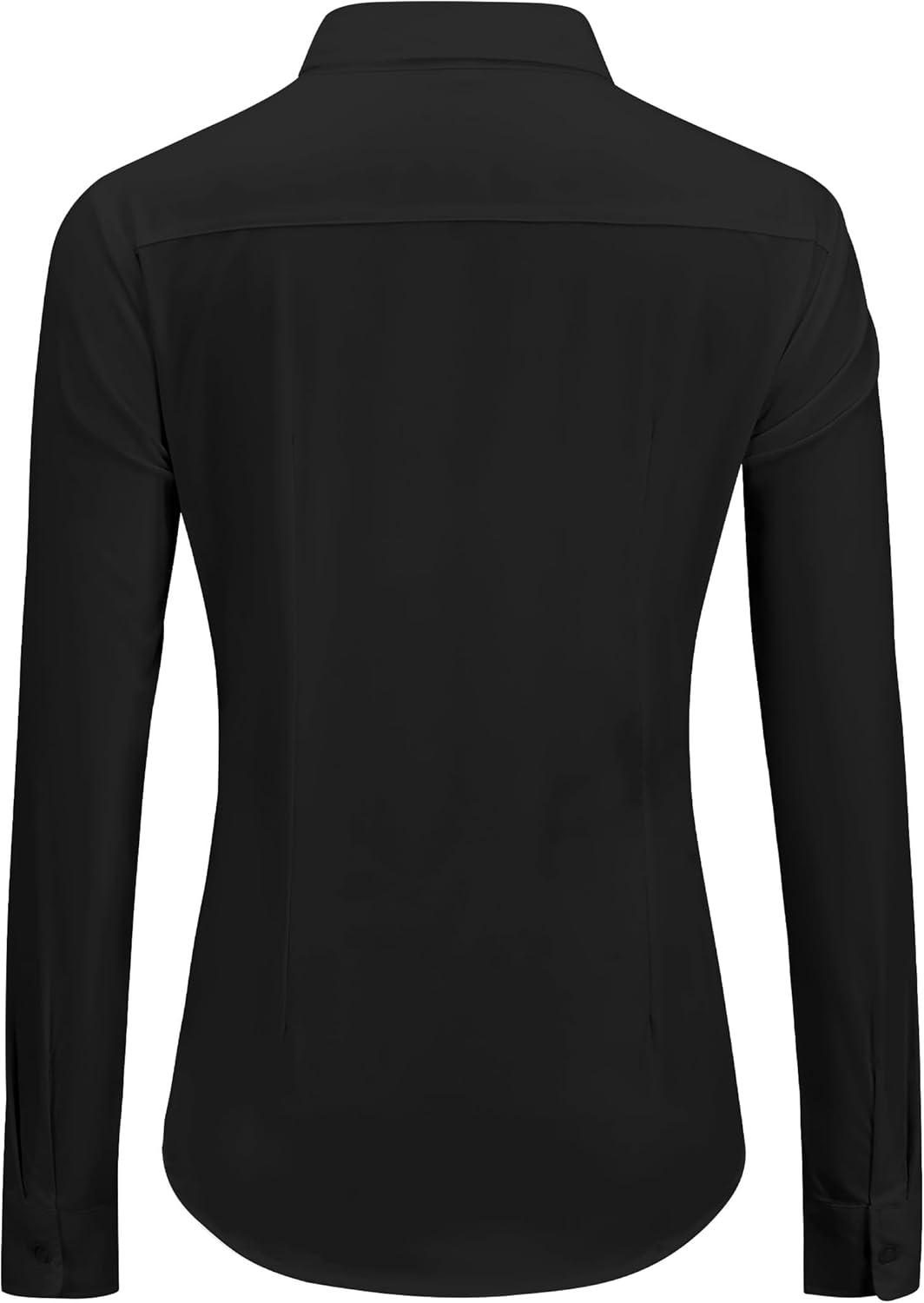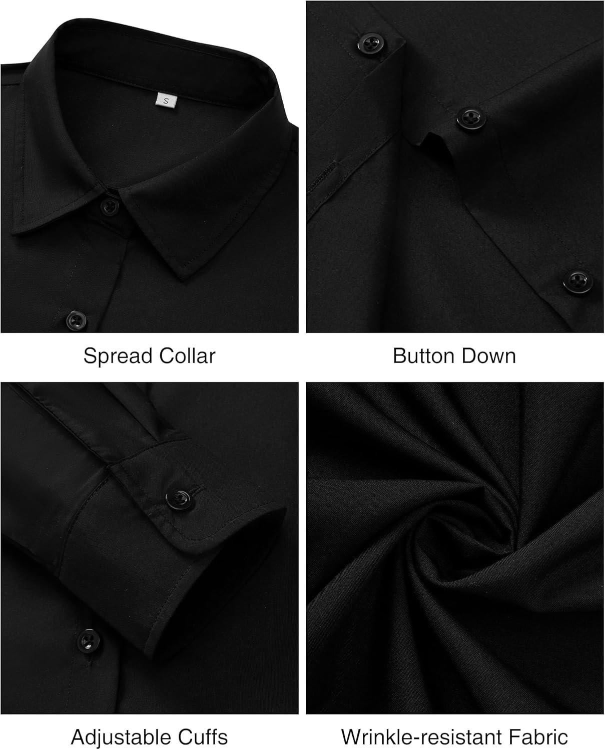 J.VER Button Down Shirts for Women Wrinkle Free Long Sleeve Dress Shirt Business Casual Work Blouse with Pocket(Black)