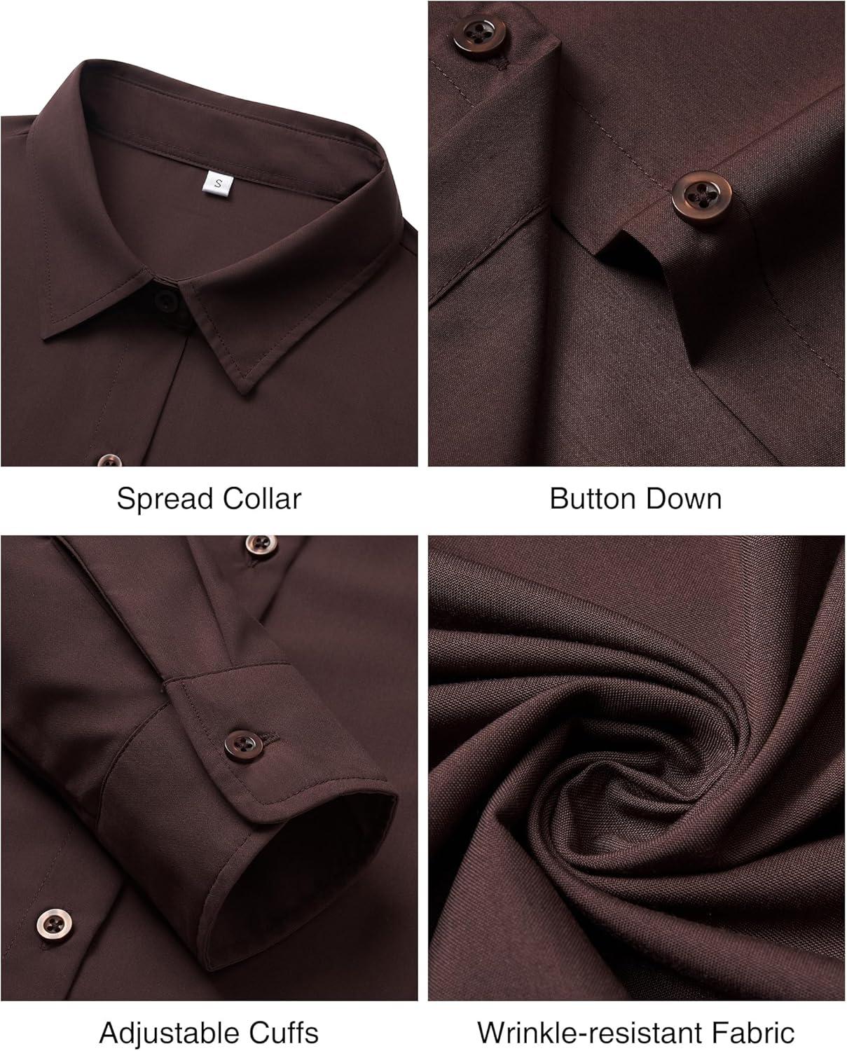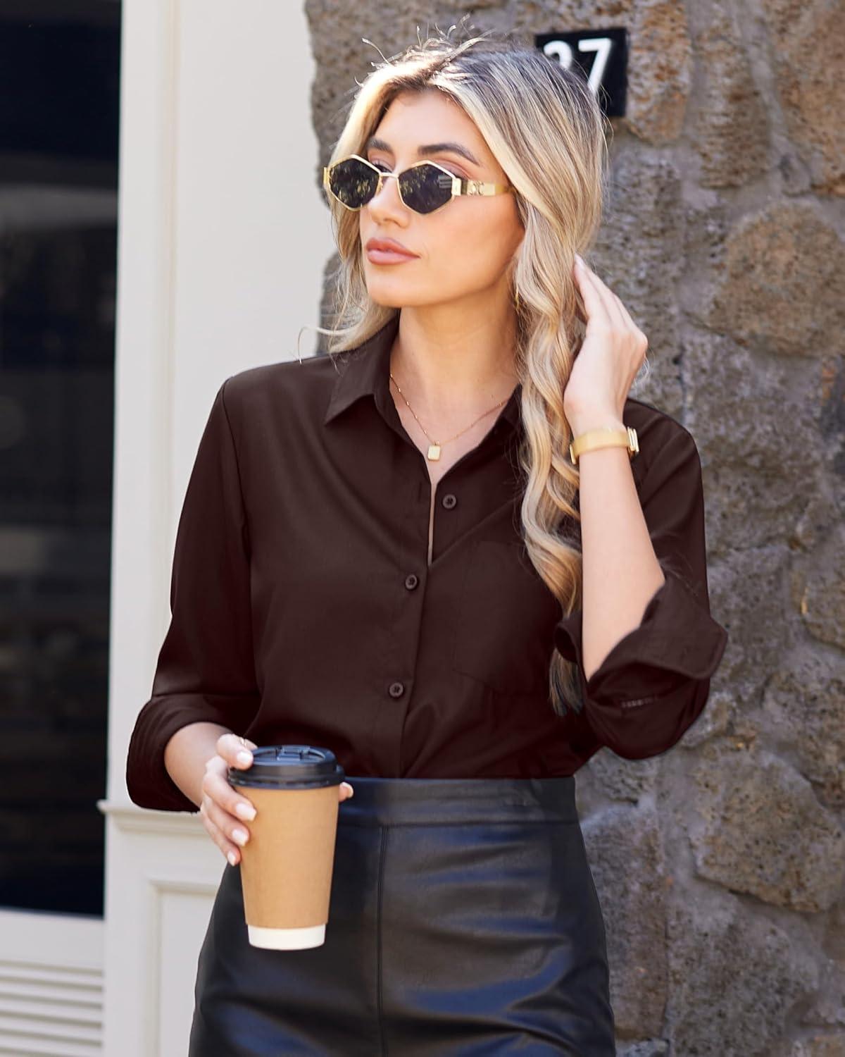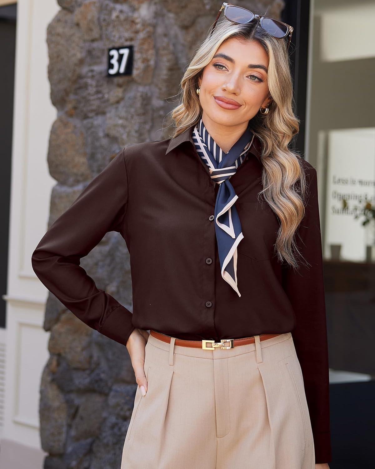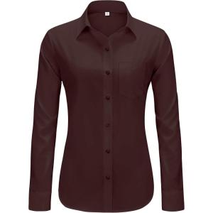 J.VER Button Down Shirts for Women Wrinkle Free Long Sleeve Dress Shirt Business Casual Work Blouse with Pocket(Brown)