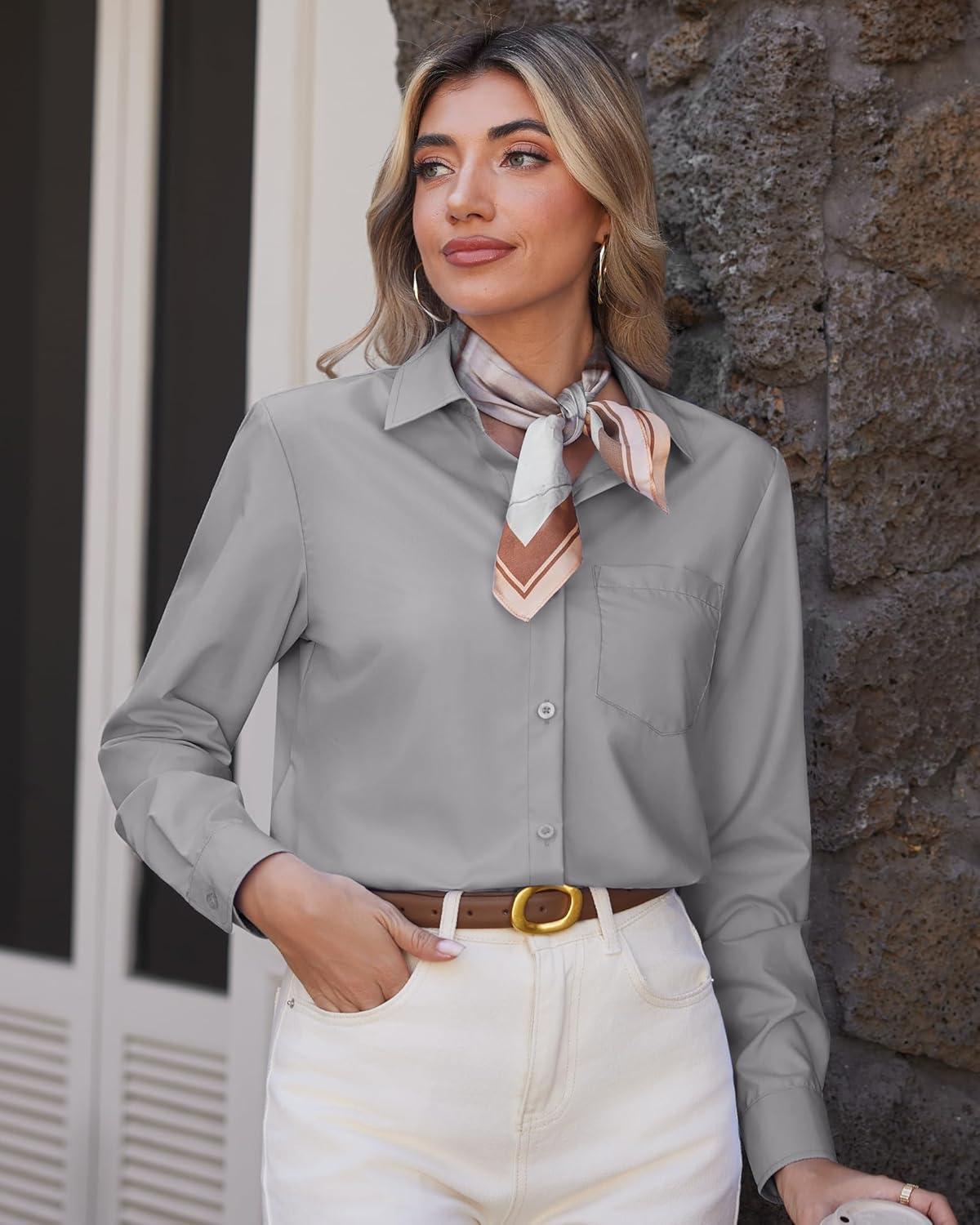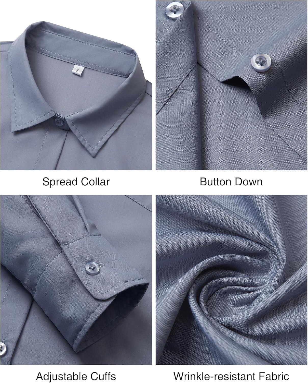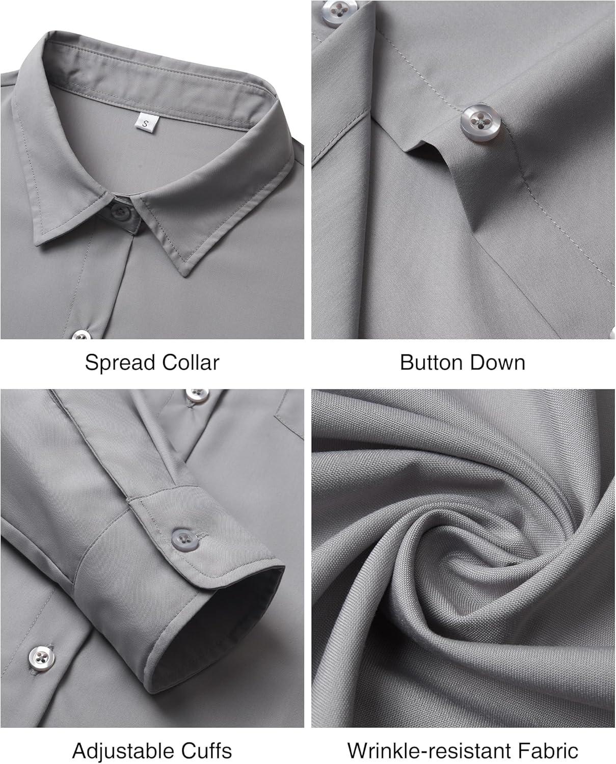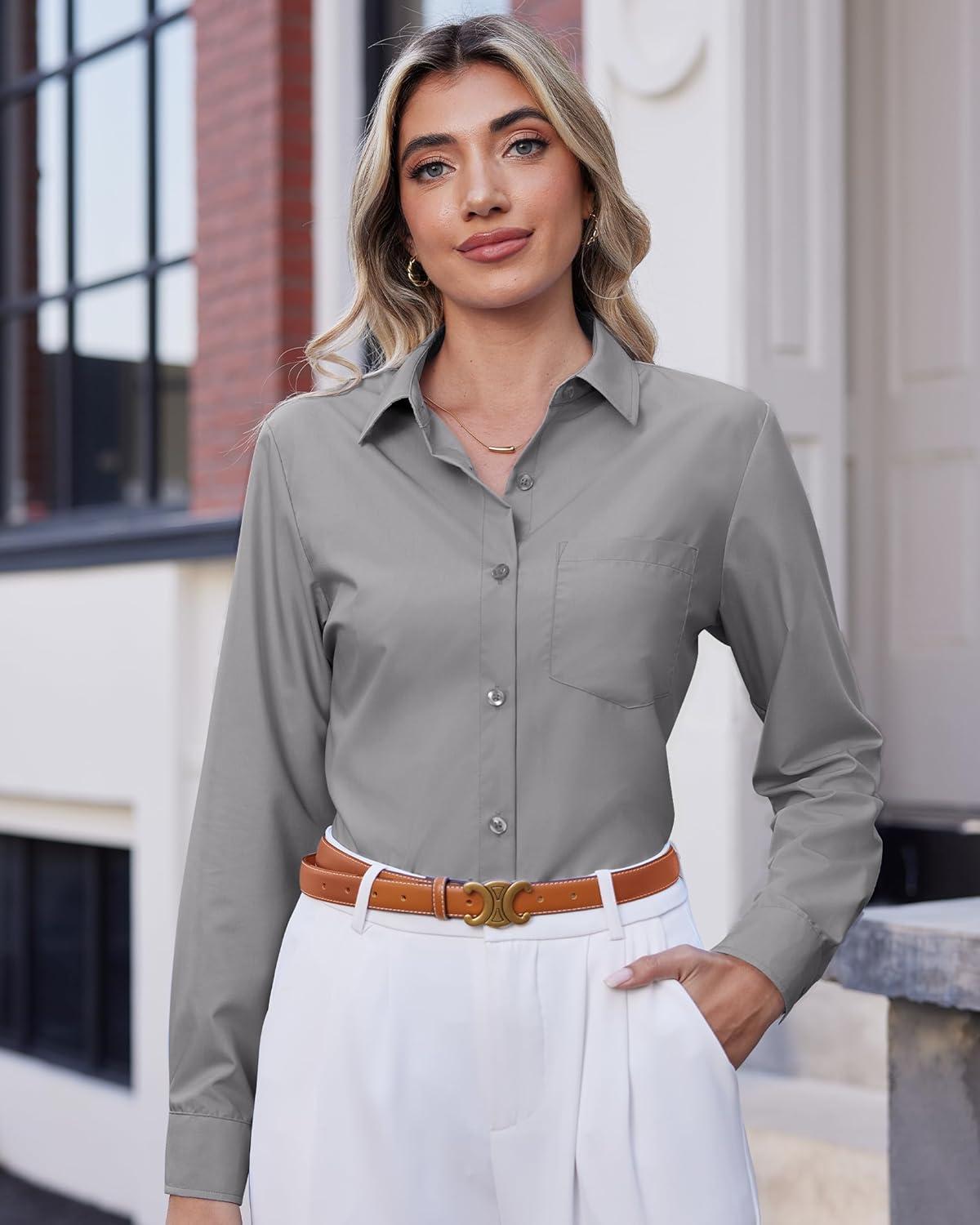 J.VER Button Down Shirts for Women Wrinkle Free Long Sleeve Dress Shirt Business Casual Work Blouse with Pocket(Grey)