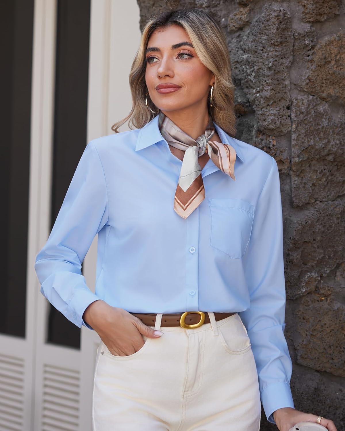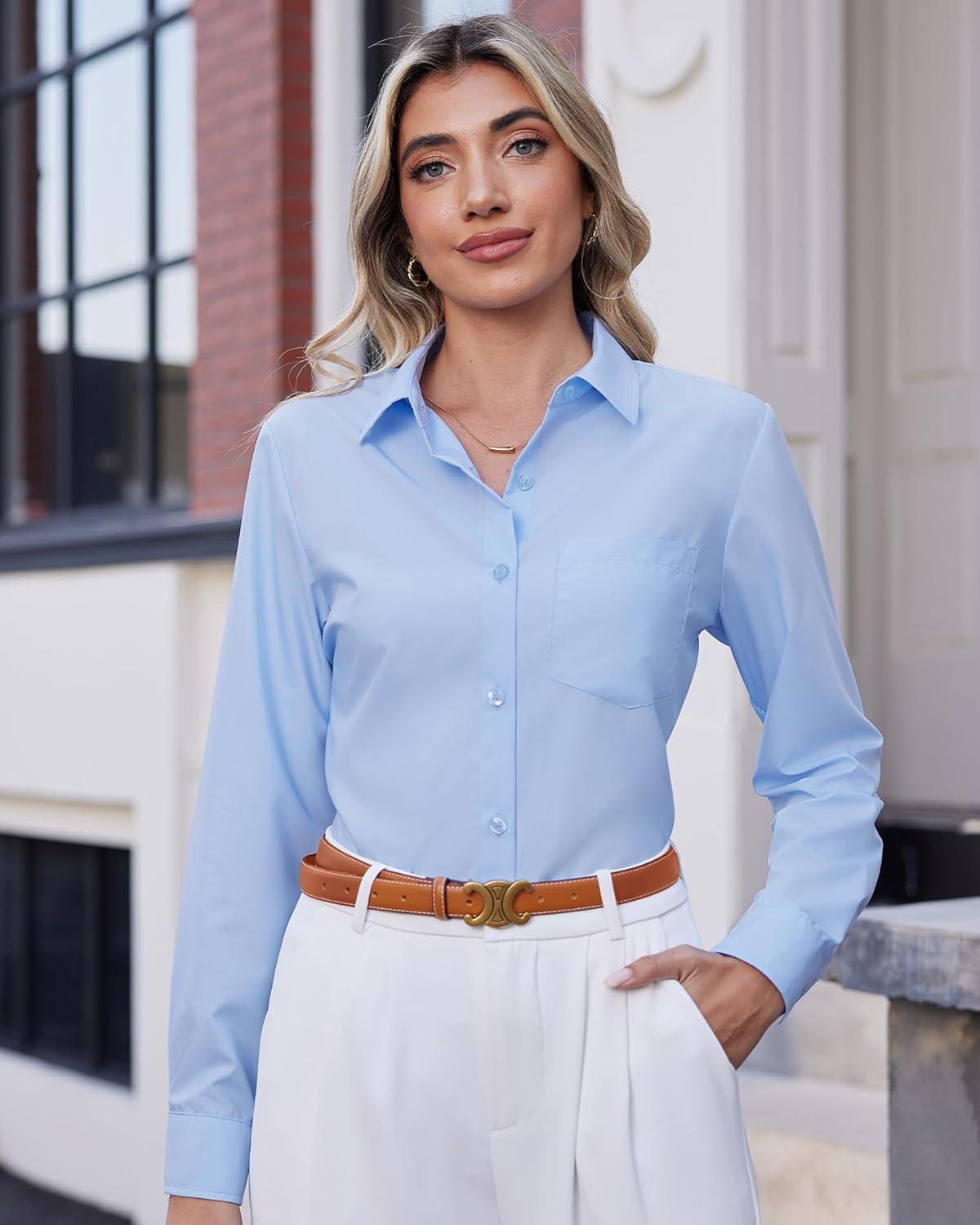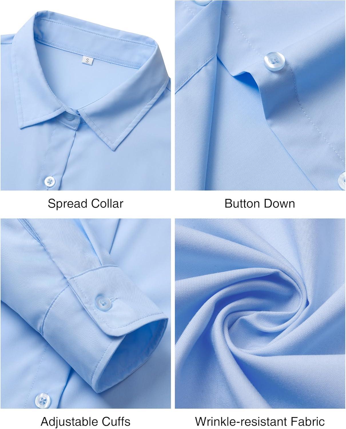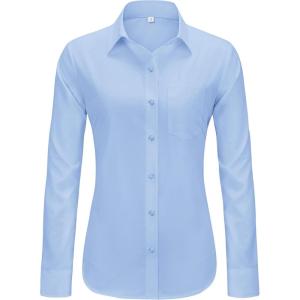 J.VER Button Down Shirts for Women Wrinkle Free Long Sleeve Dress Shirt Business Casual Work Blouse with Pocket(Light Blue)