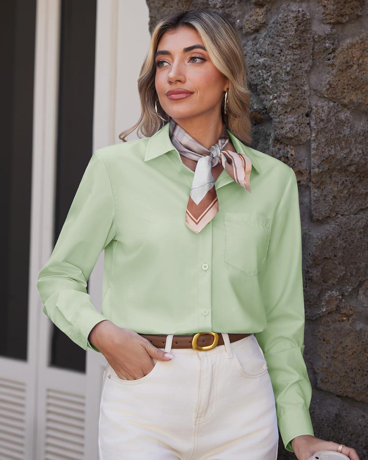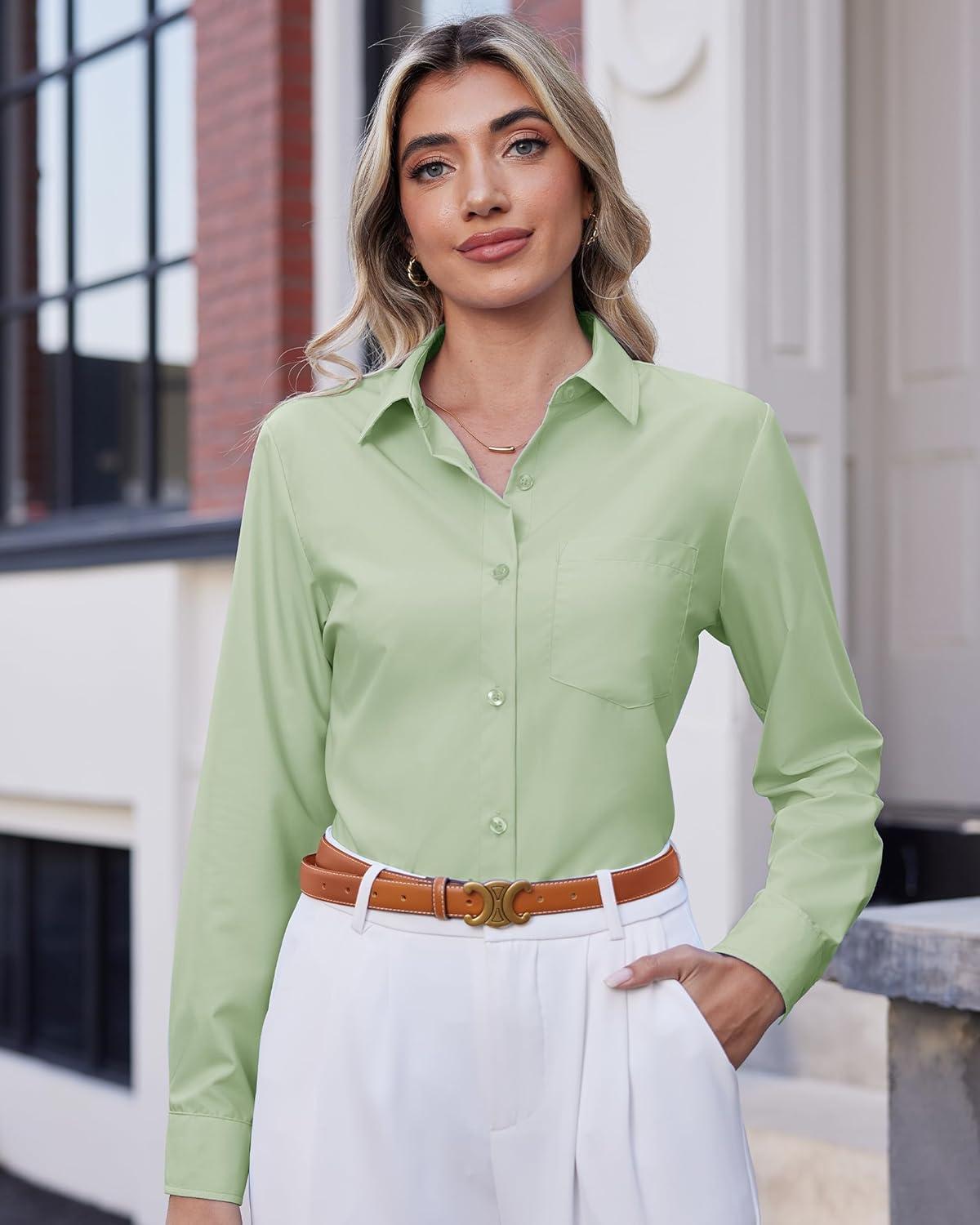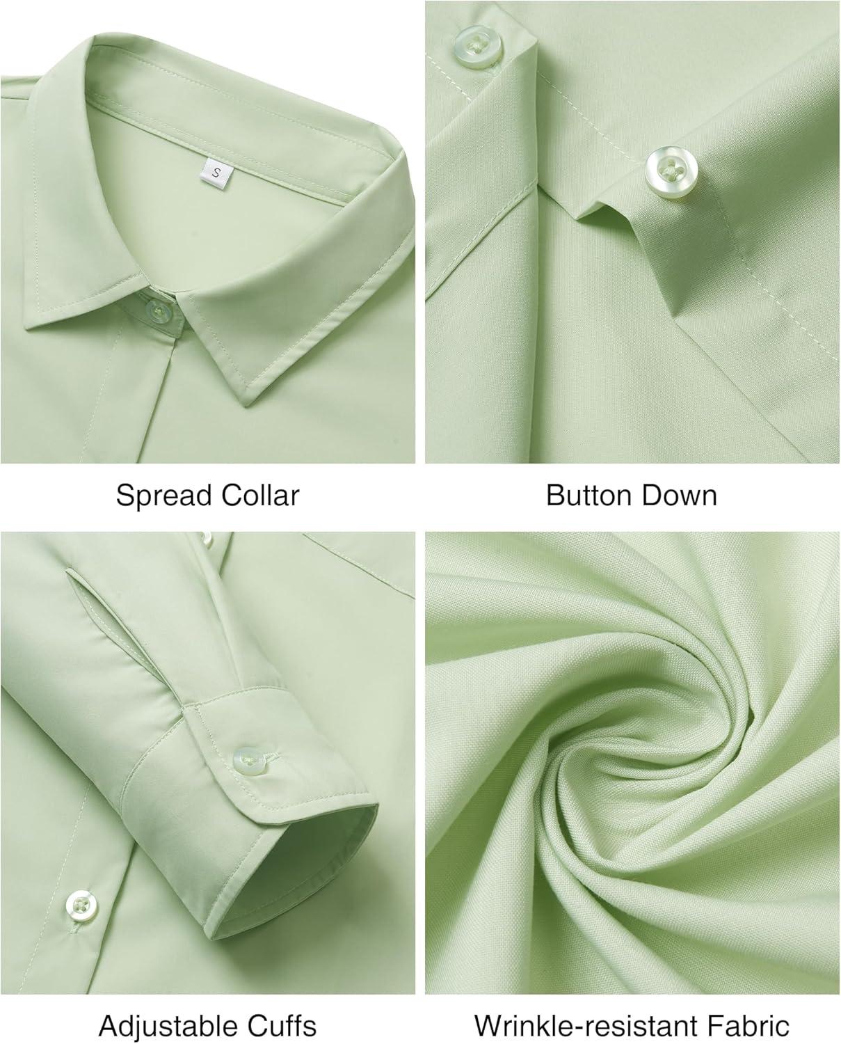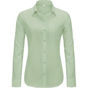 J.VER Button Down Shirts for Women Wrinkle Free Long Sleeve Dress Shirt Business Casual Work Blouse with Pocket(Light Green)