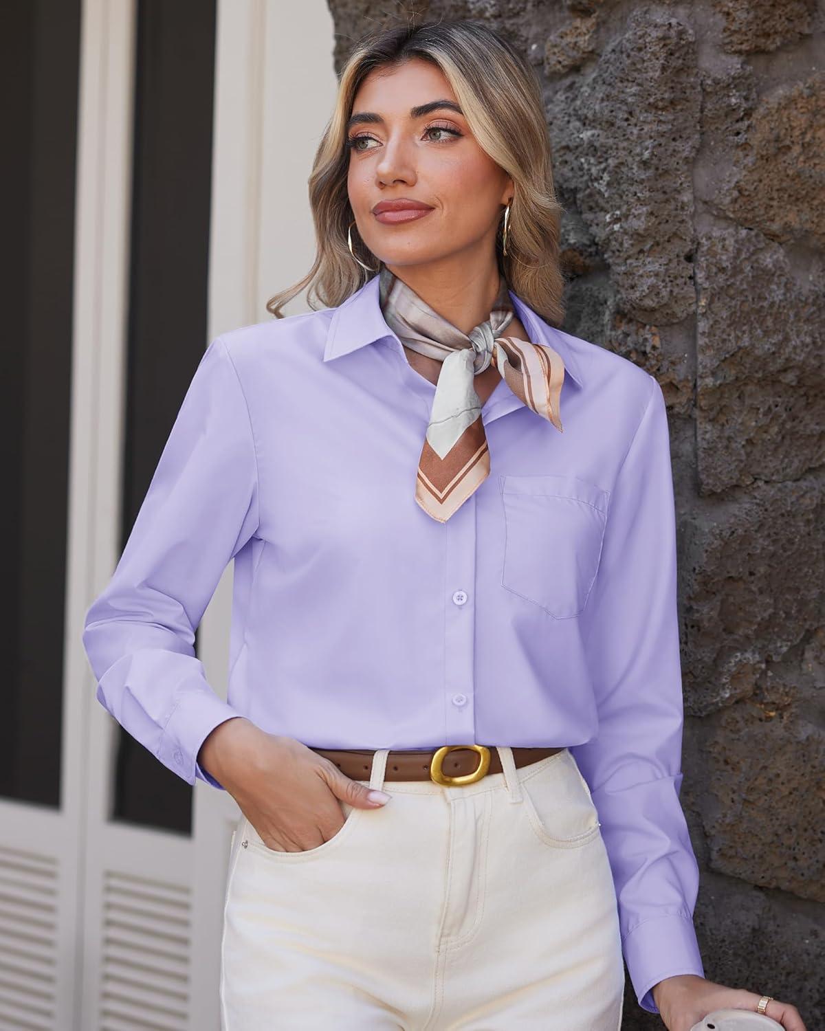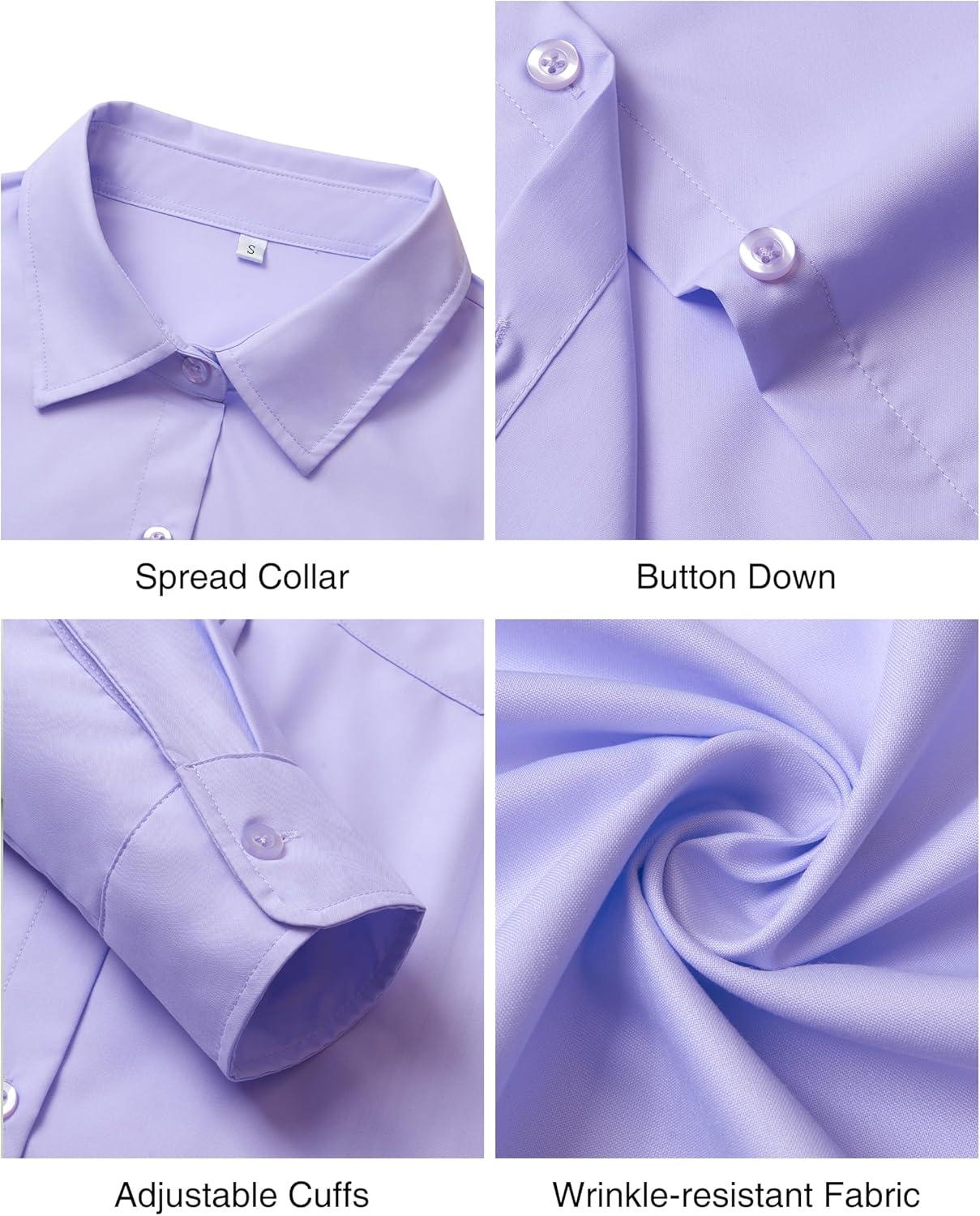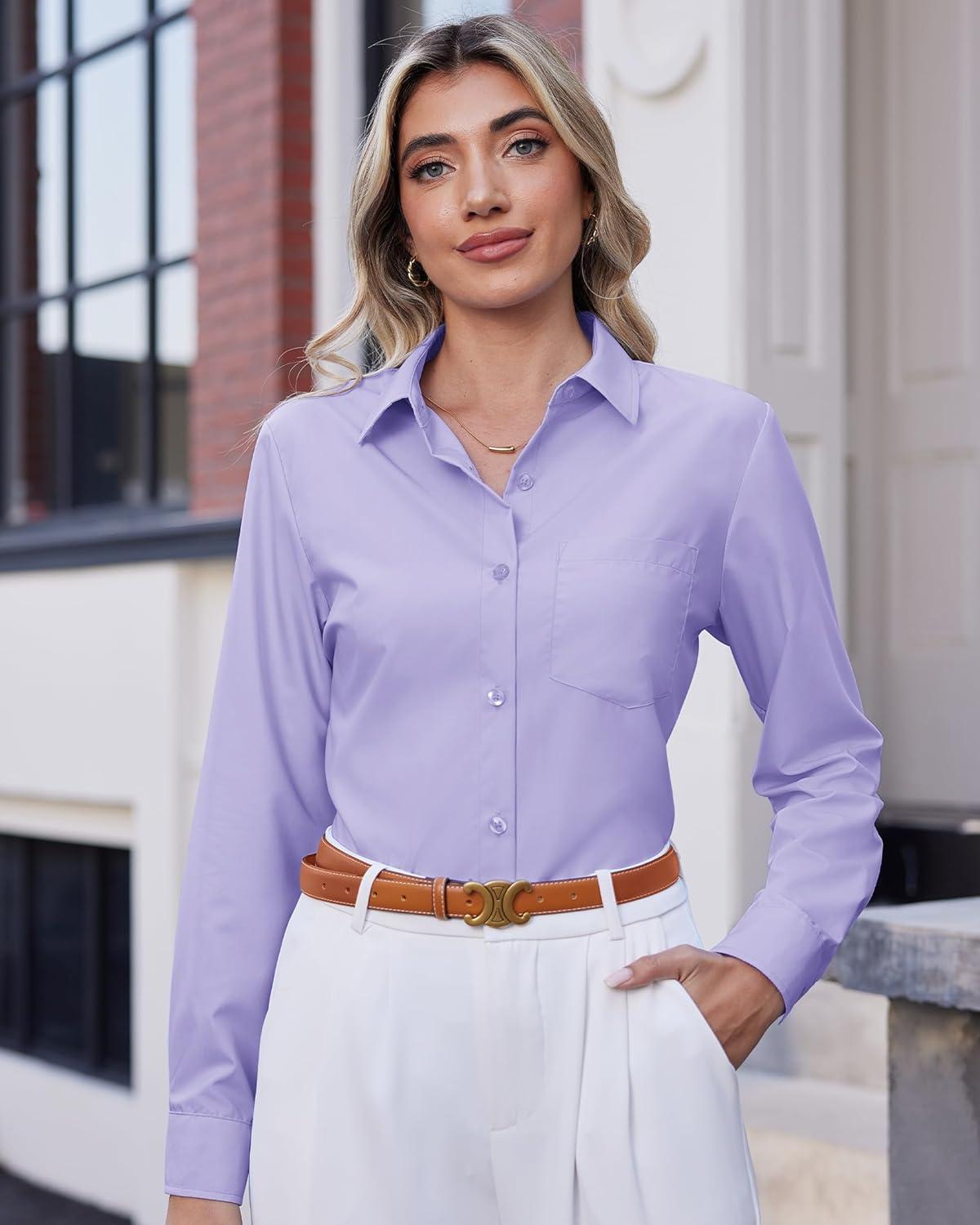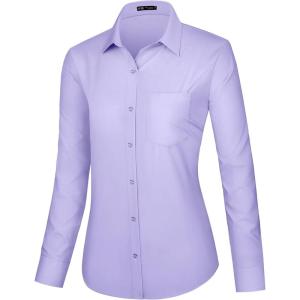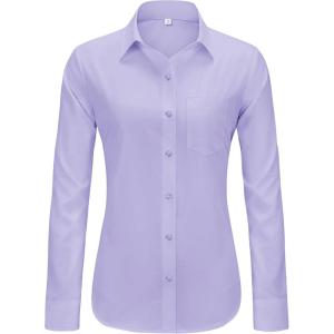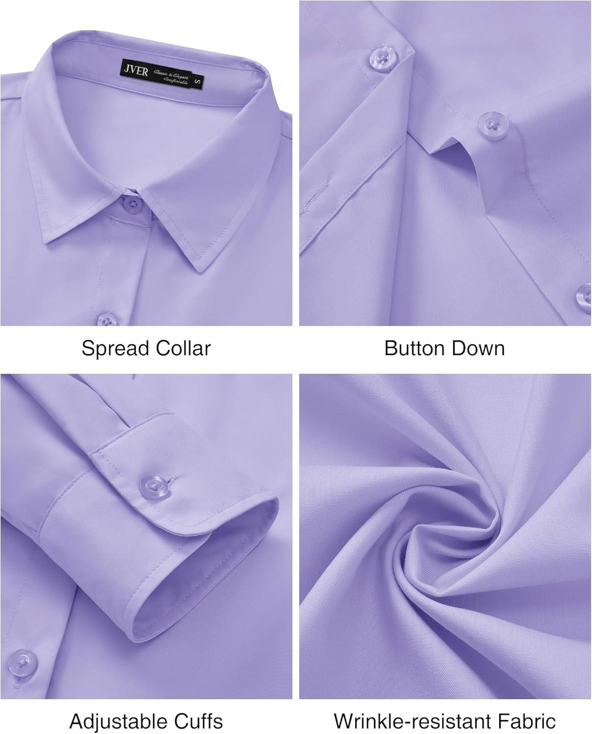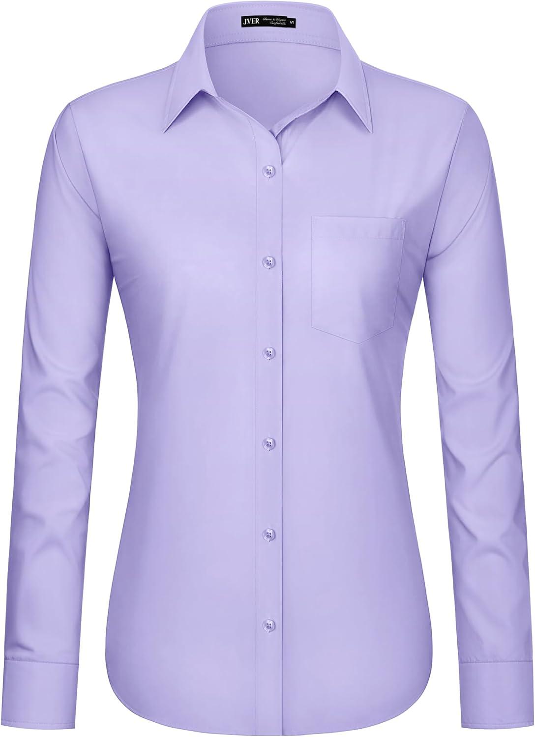 J.VER Button Down Shirts for Women Wrinkle Free Long Sleeve Dress Shirt Business Casual Work Blouse with Pocket(Light Purple)