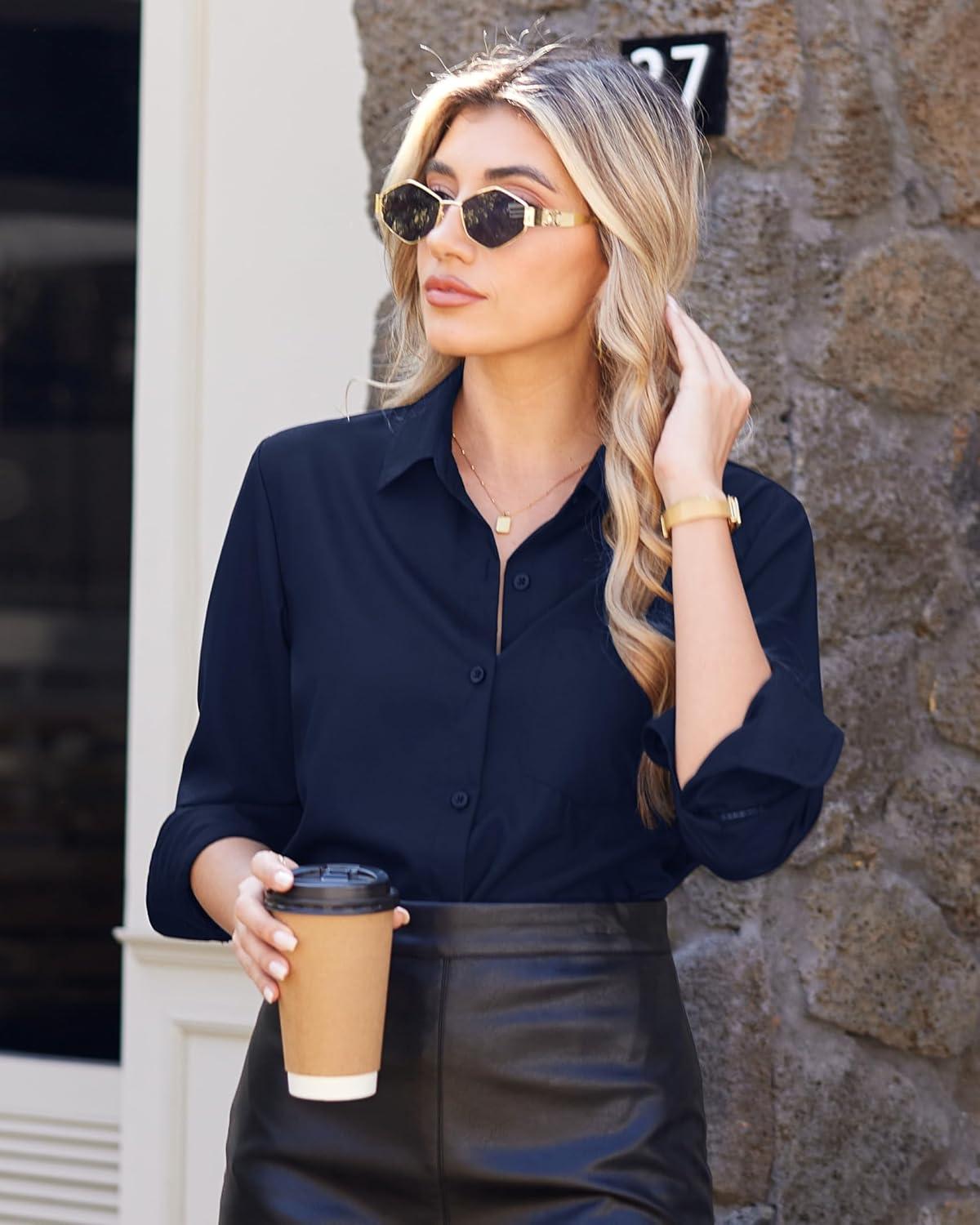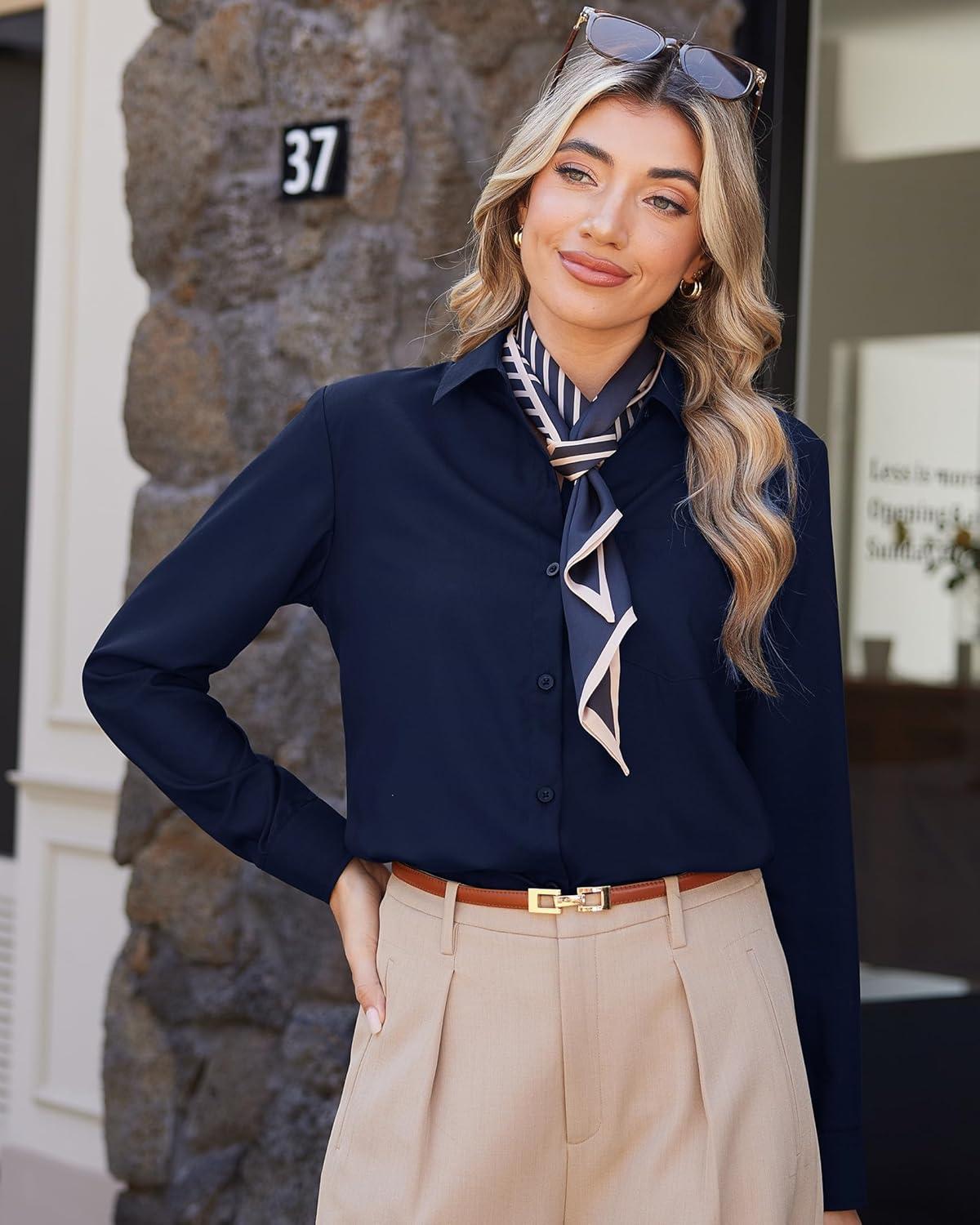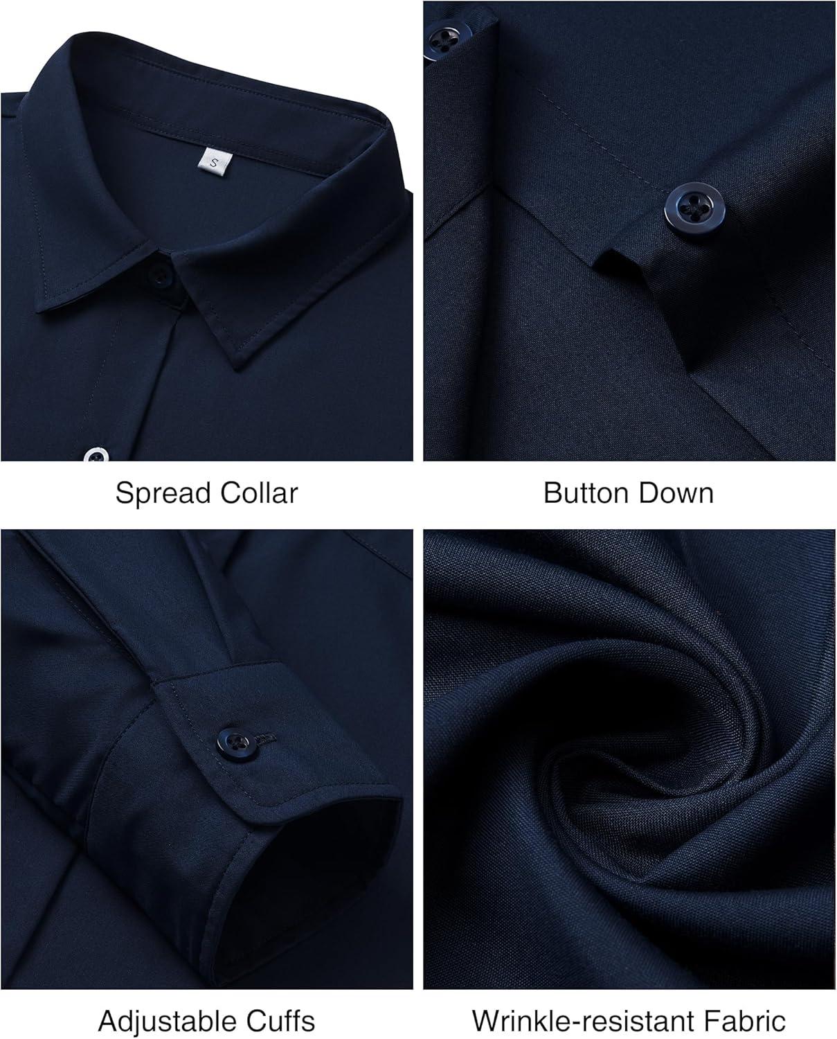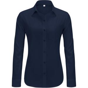 J.VER Button Down Shirts for Women Wrinkle Free Long Sleeve Dress Shirt Business Casual Work Blouse with Pocket(Navy Blue)