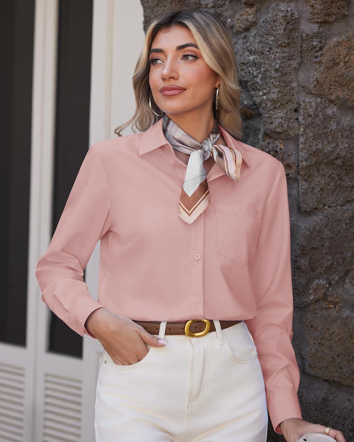 J.VER Button Down Shirts for Women Wrinkle Free Long Sleeve Dress Shirt Business Casual Work Blouse with Pocket(Peach Pink)