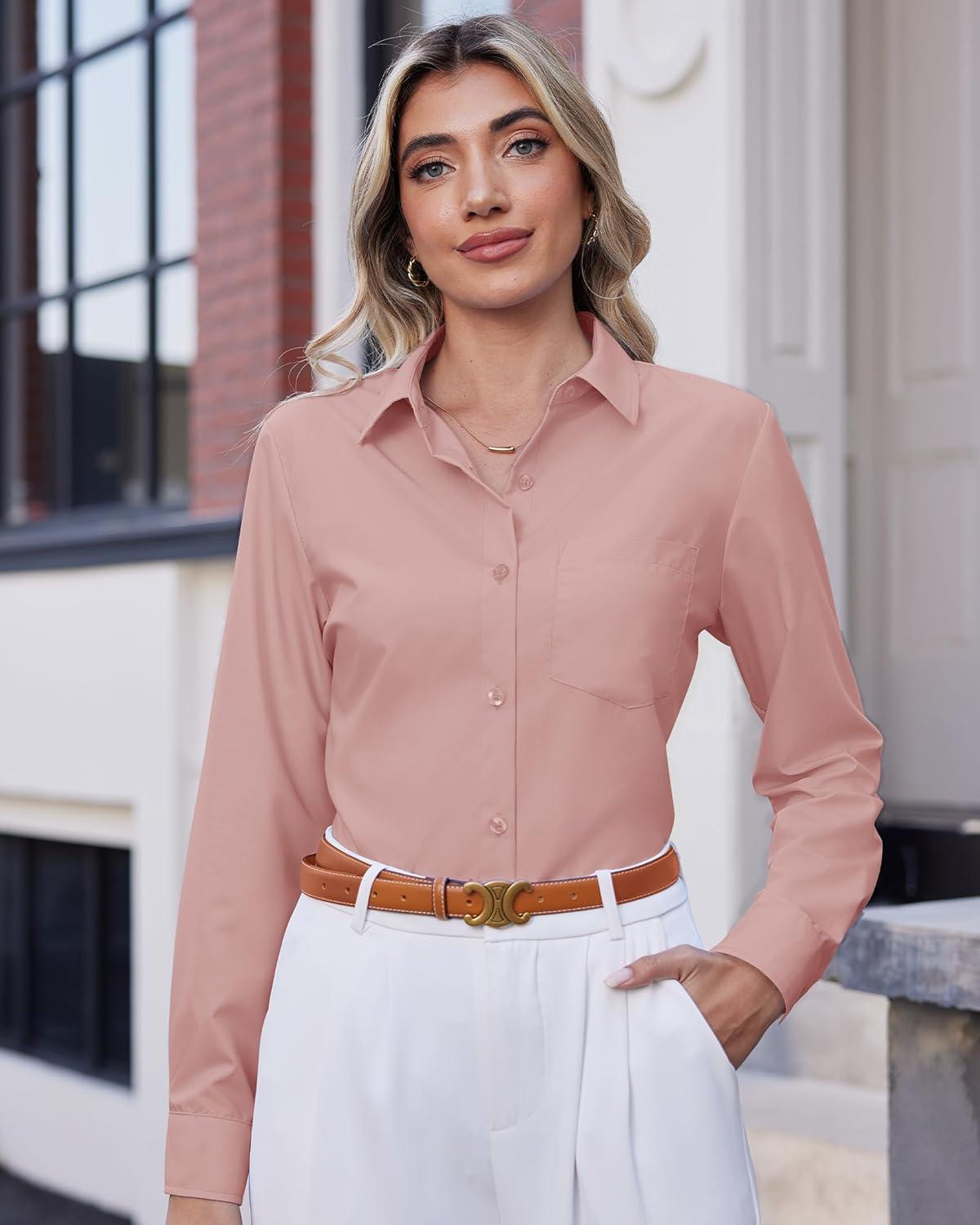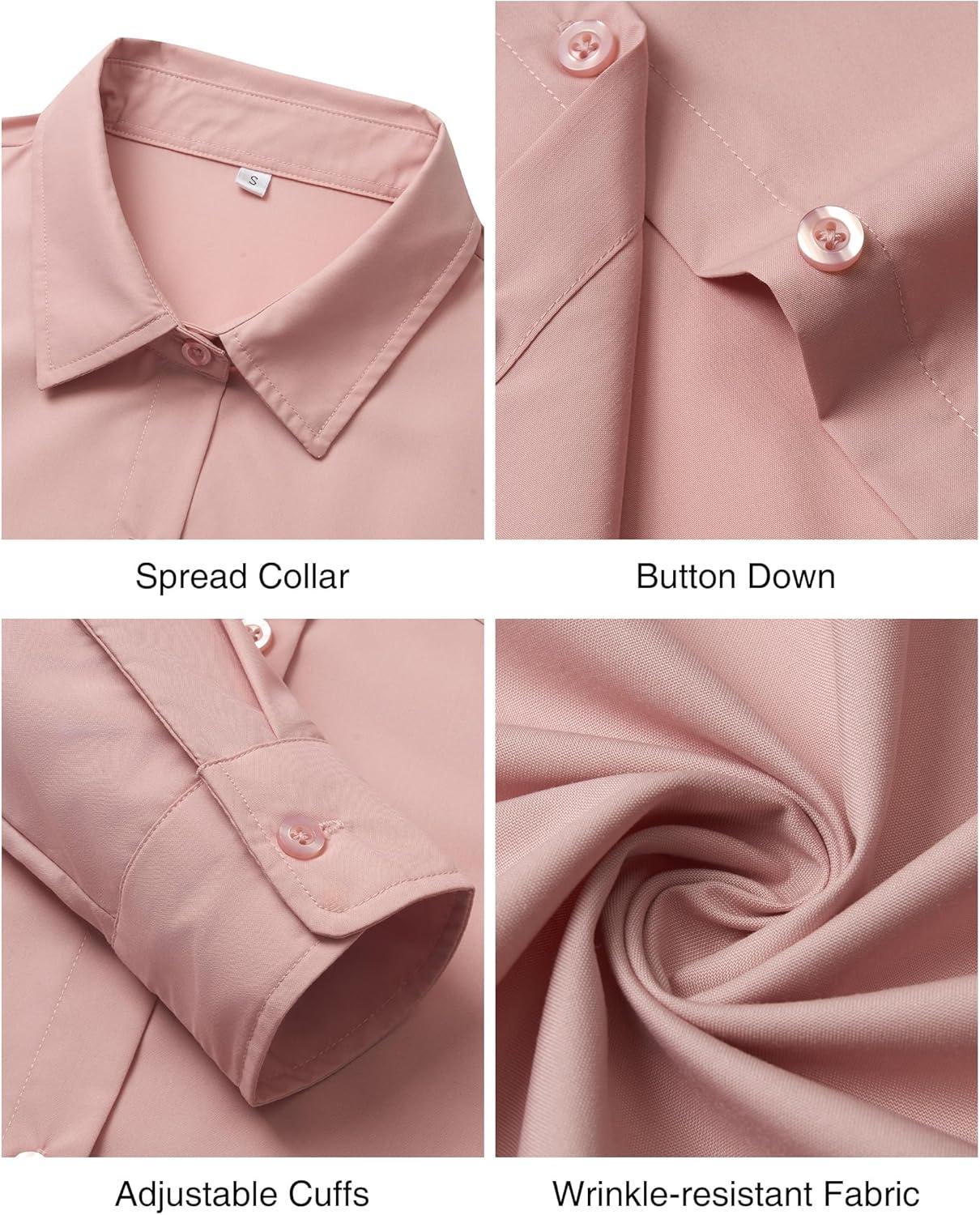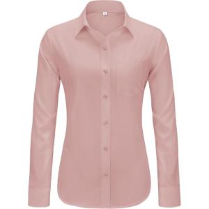 J.VER Button Down Shirts for Women Wrinkle Free Long Sleeve Dress Shirt Business Casual Work Blouse with Pocket(Pink)