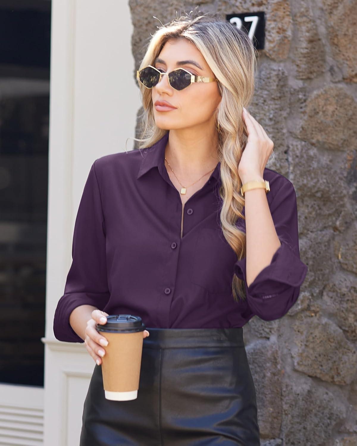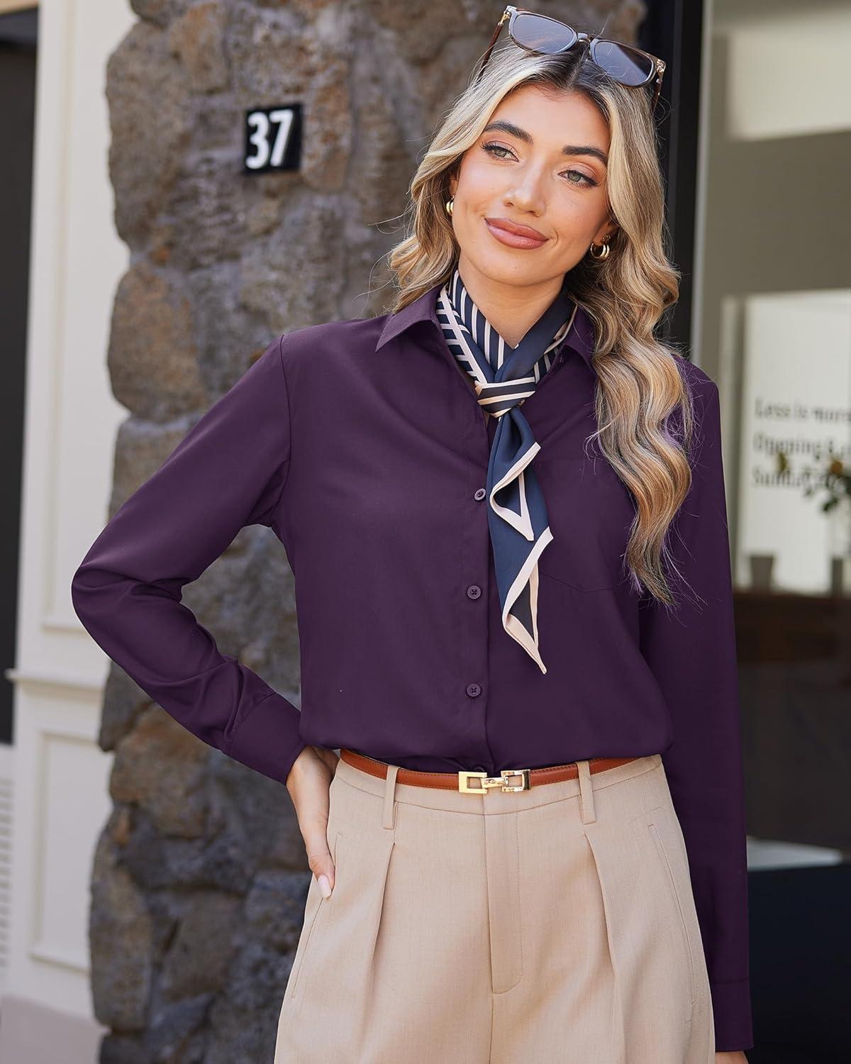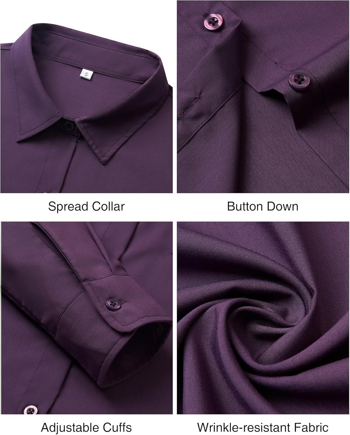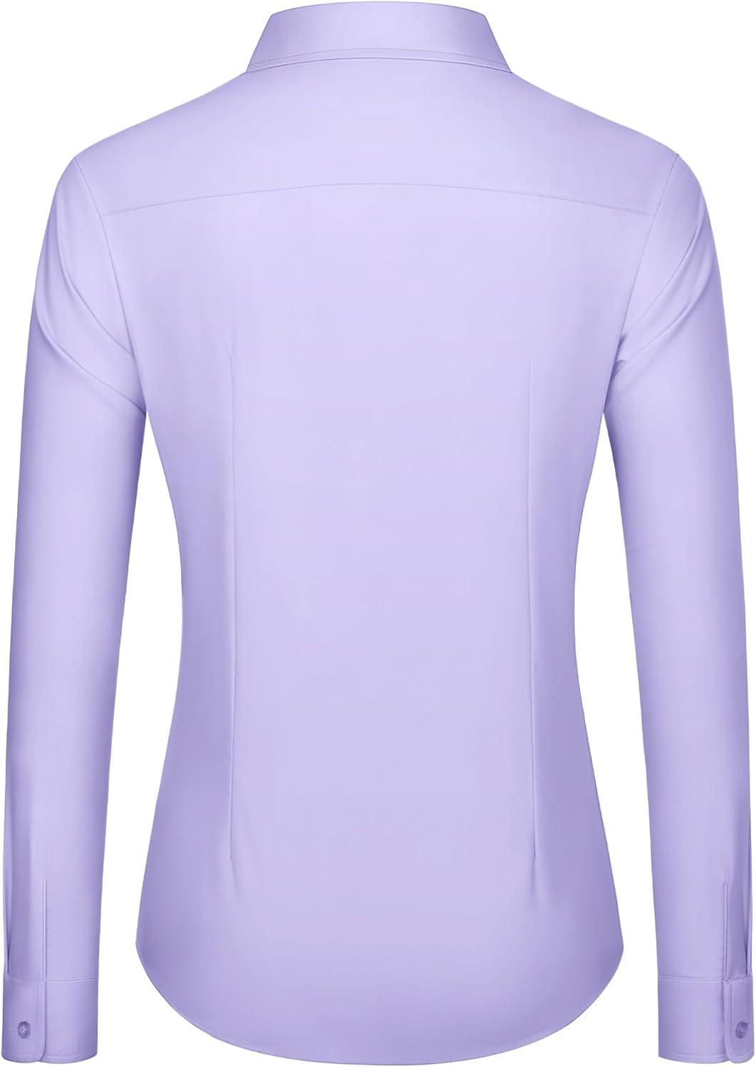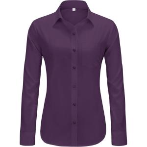 J.VER Button Down Shirts for Women Wrinkle Free Long Sleeve Dress Shirt Business Casual Work Blouse with Pocket(Purple)