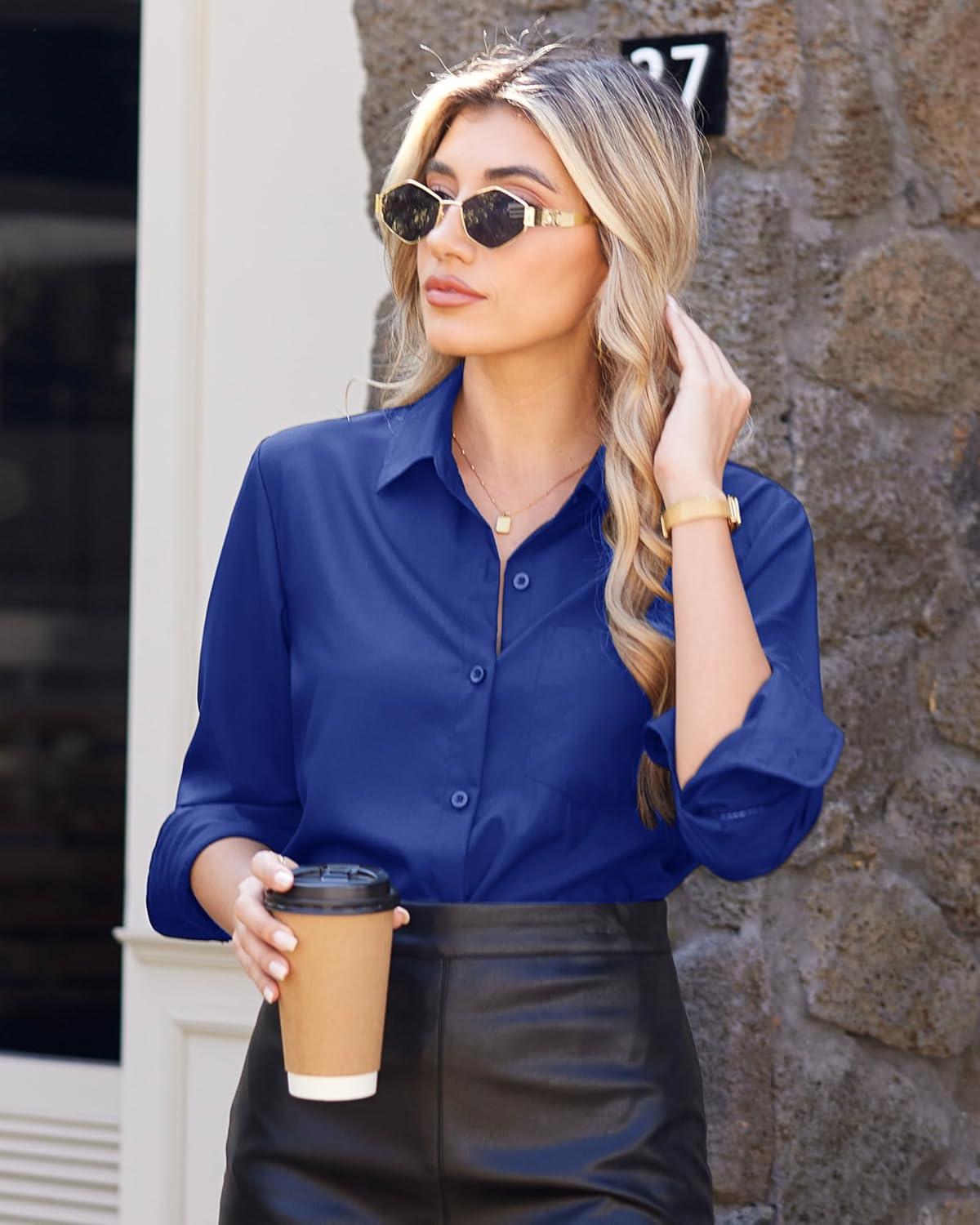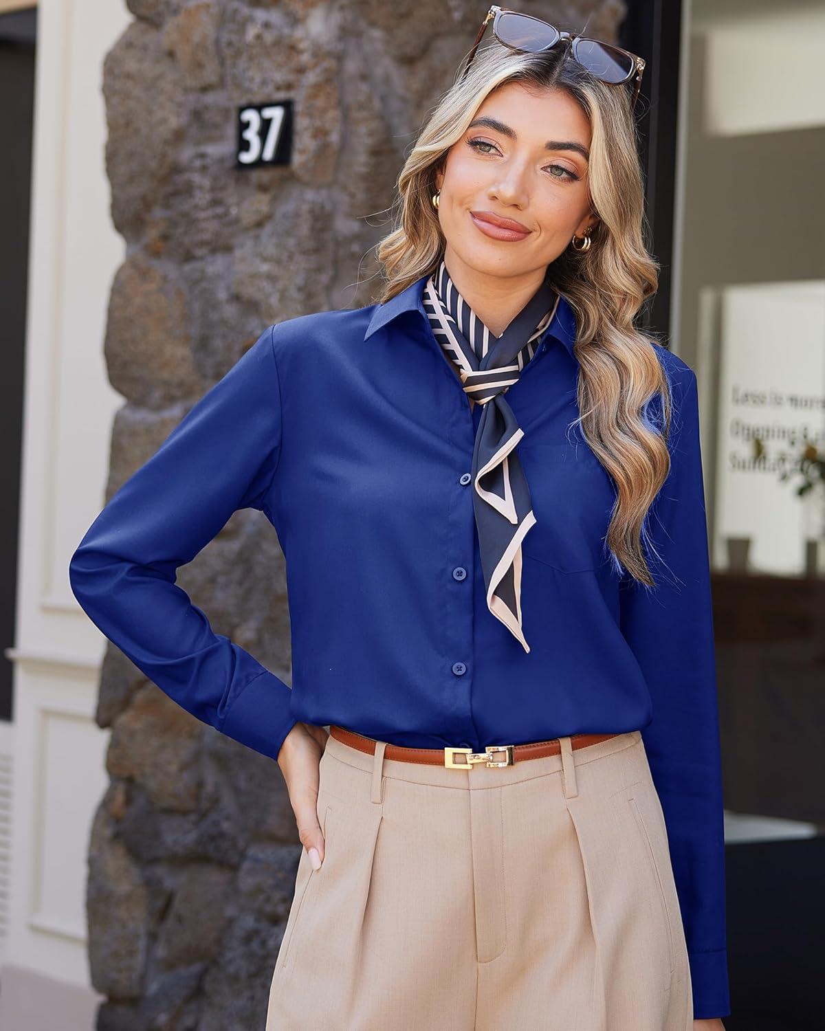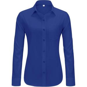 J.VER Button Down Shirts for Women Wrinkle Free Long Sleeve Dress Shirt Business Casual Work Blouse with Pocket(Royal Blue)