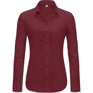 J.VER Button Down Shirts for Women Wrinkle Free Long Sleeve Dress Shirt Business Casual Work Blouse with Pocket(Burgundy)
