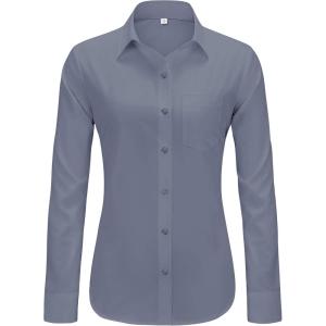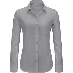 J.VER Button Down Shirts for Women Wrinkle Free Long Sleeve Dress Shirt Business Casual Work Blouse with Pocket(Silver Grey)