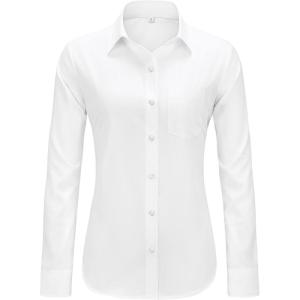 J.VER Button Down Shirts for Women Wrinkle Free Long Sleeve Dress Shirt Business Casual Work Blouse with Pocket(White)