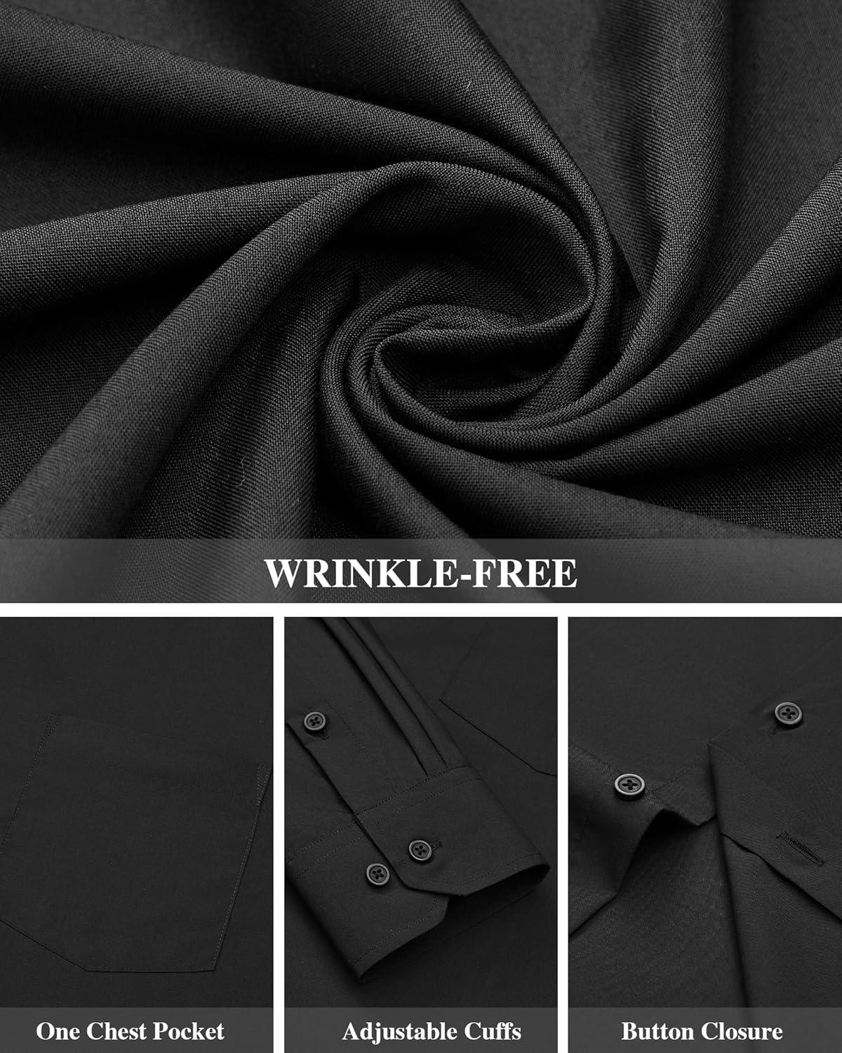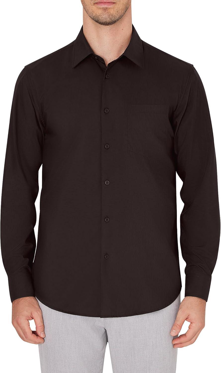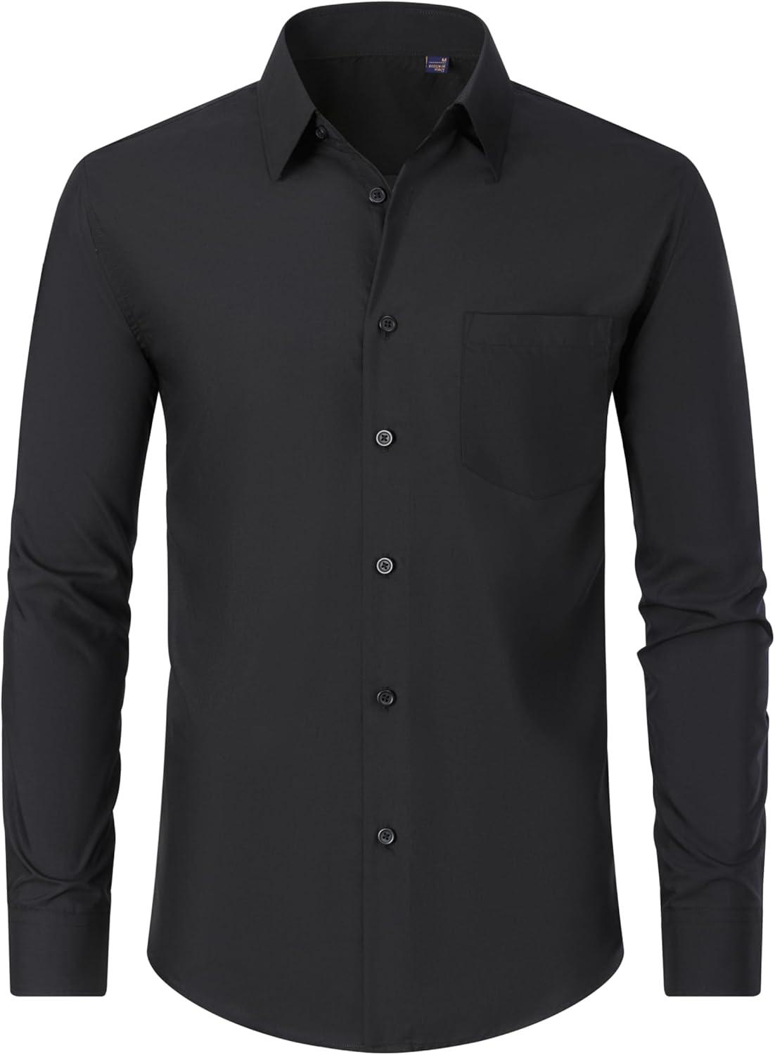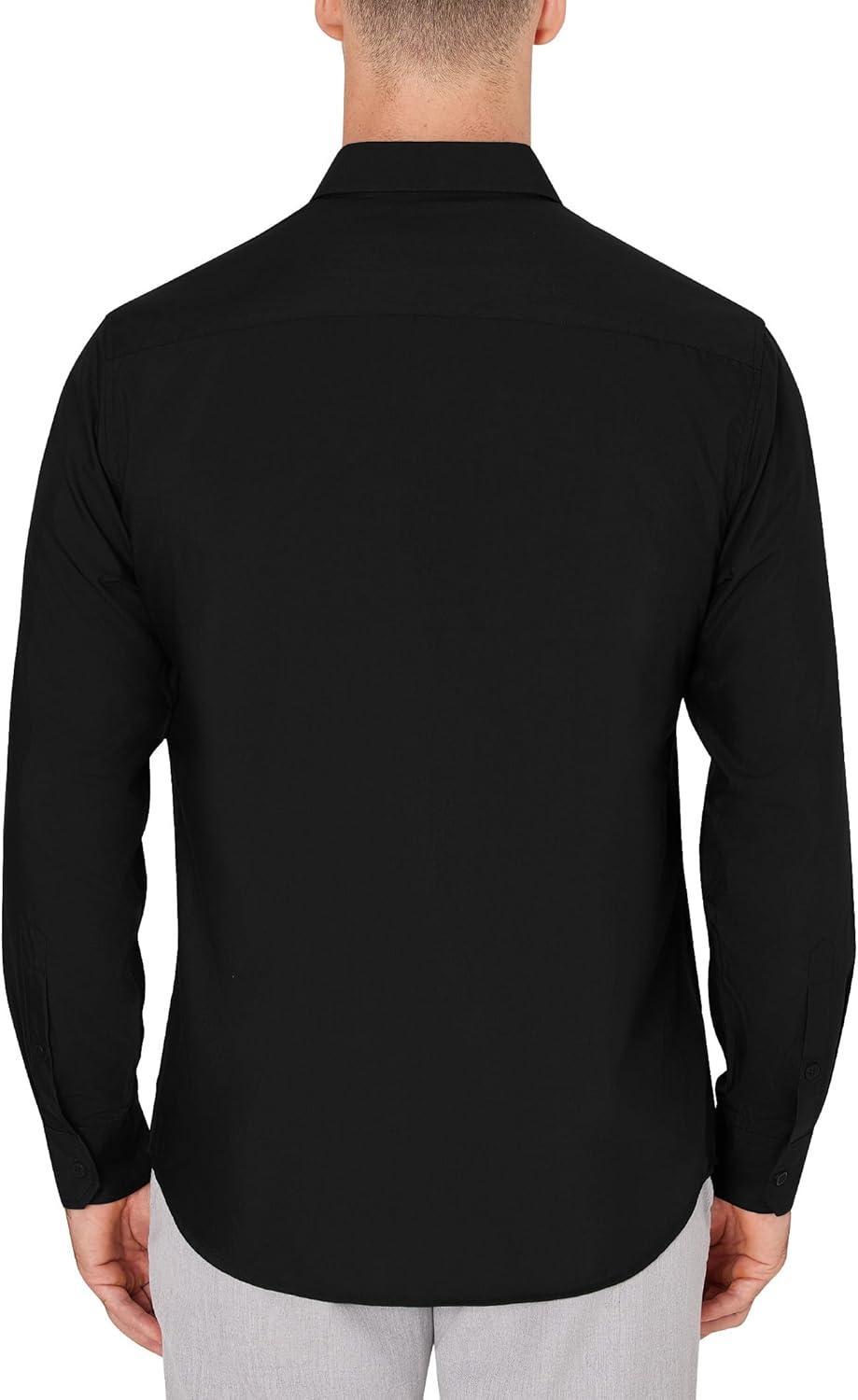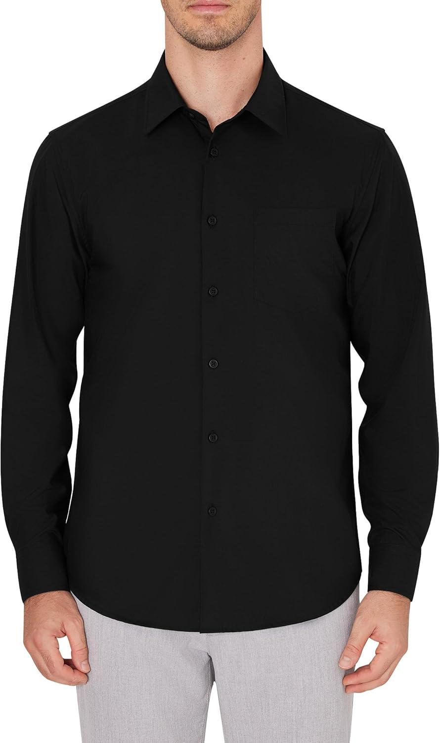 J.VER Men’s Dress Shirts Solid Long Sleeve Stretch Wrinkle-Free Formal Shirt Business Casual Button Down Shirts(Black)