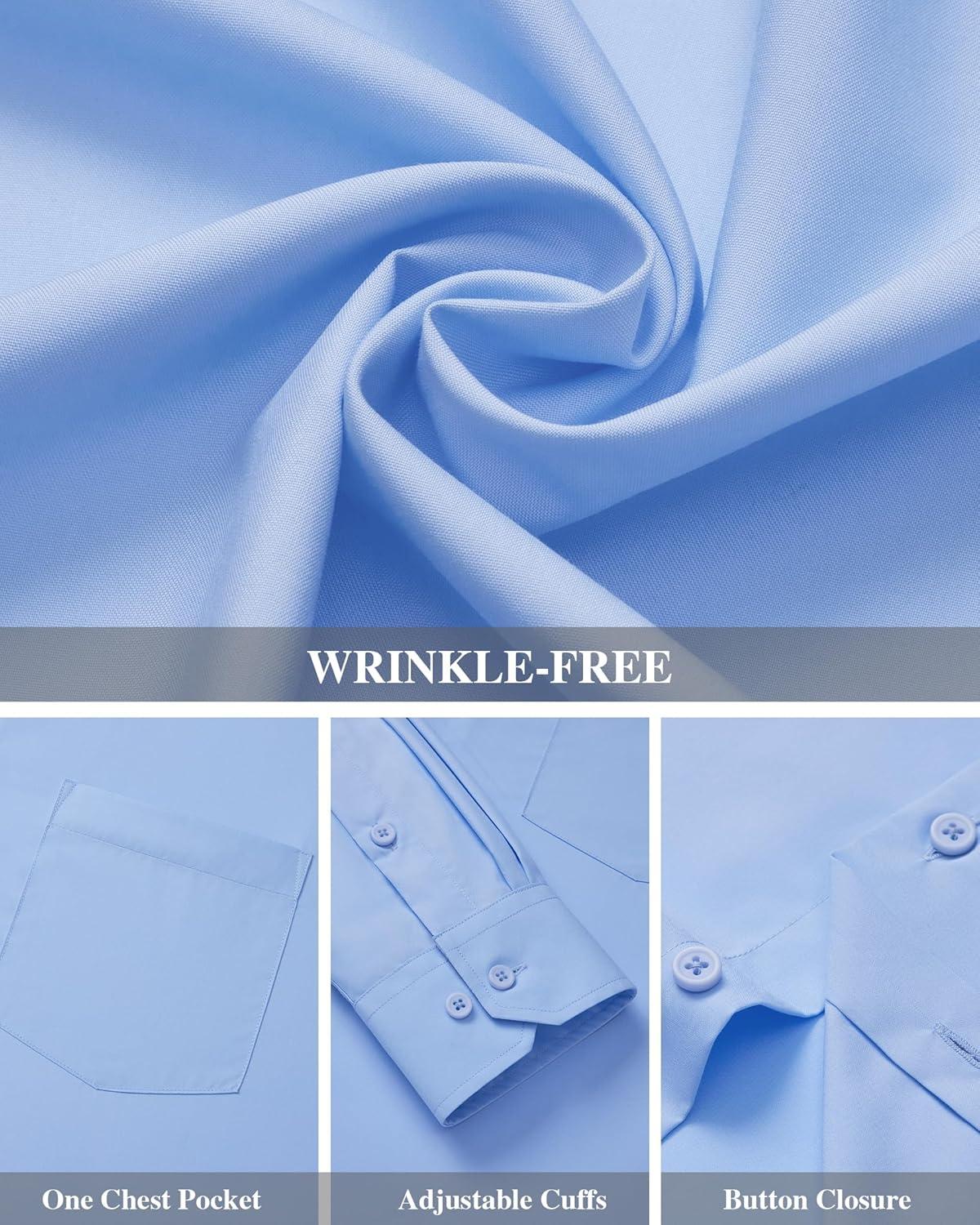 J.VER Men’s Dress Shirts Solid Long Sleeve Stretch Wrinkle-Free Formal Shirt Business Casual Button Down Shirts(Blue)