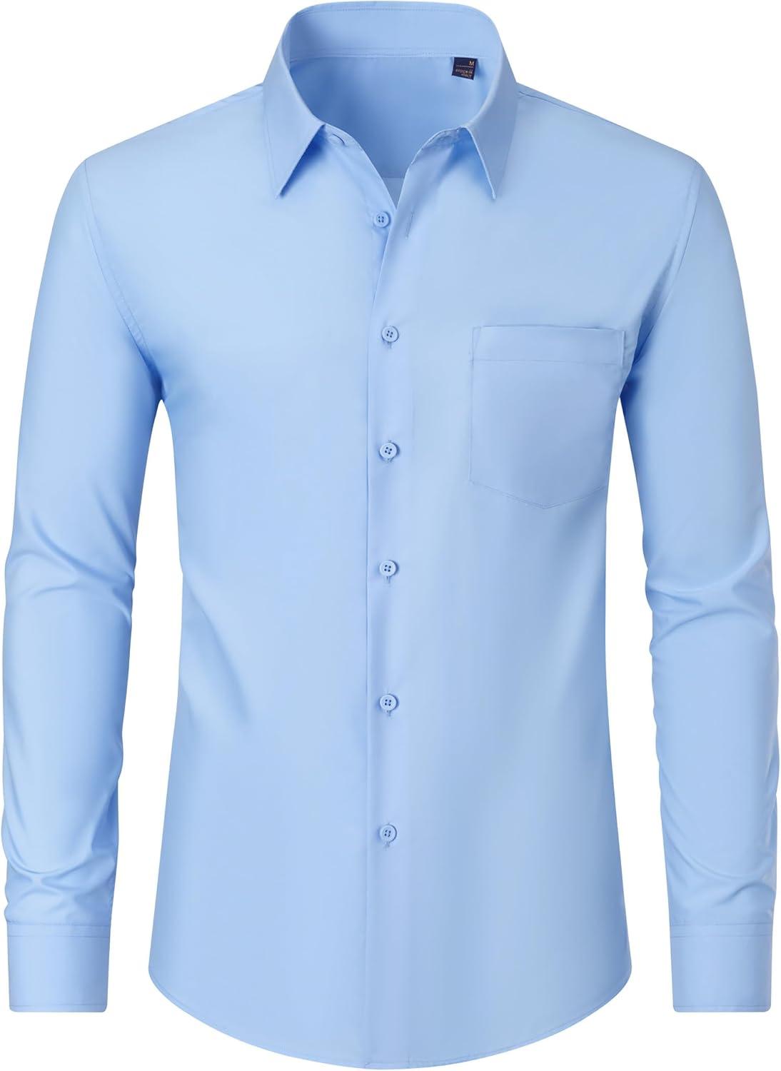 J.VER Men’s Dress Shirts Solid Long Sleeve Stretch Wrinkle-Free Formal Shirt Business Casual Button Down Shirts(Sky Blue)