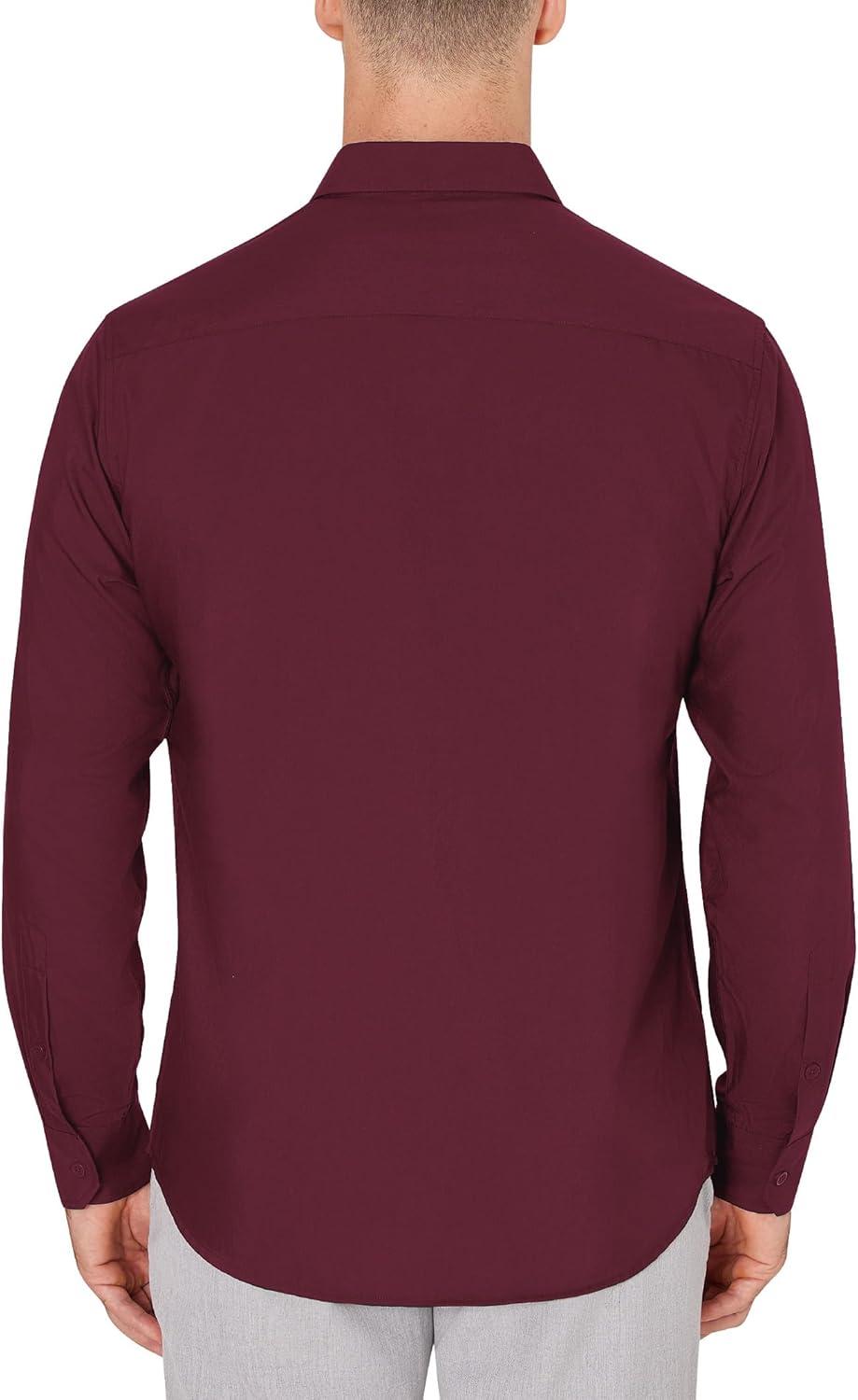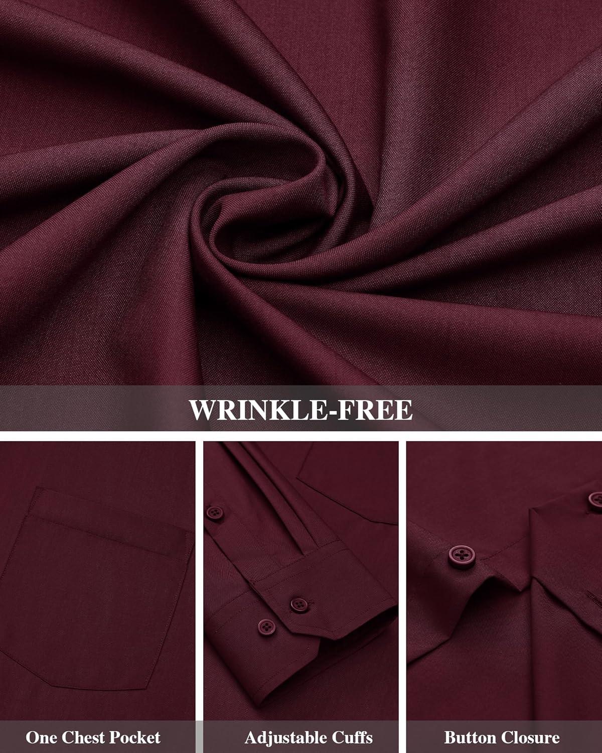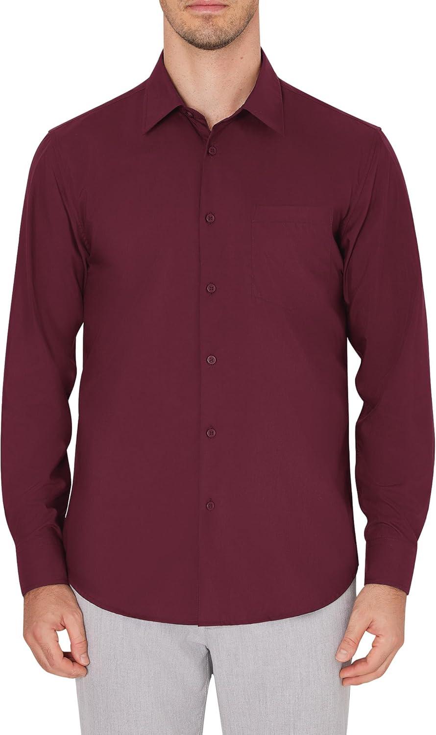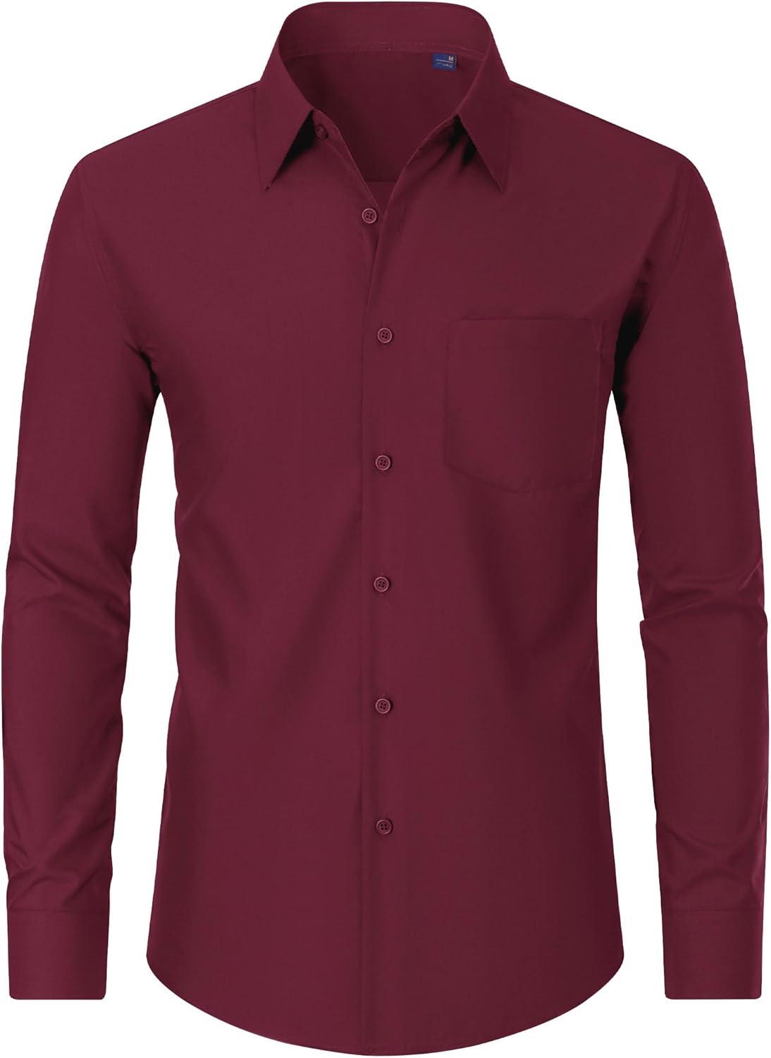 J.VER Men’s Dress Shirts Stretch Long Sleeve Formal Shirt Solid Business Casual Button Down Shirts for Wedding Prom(Burgundy)