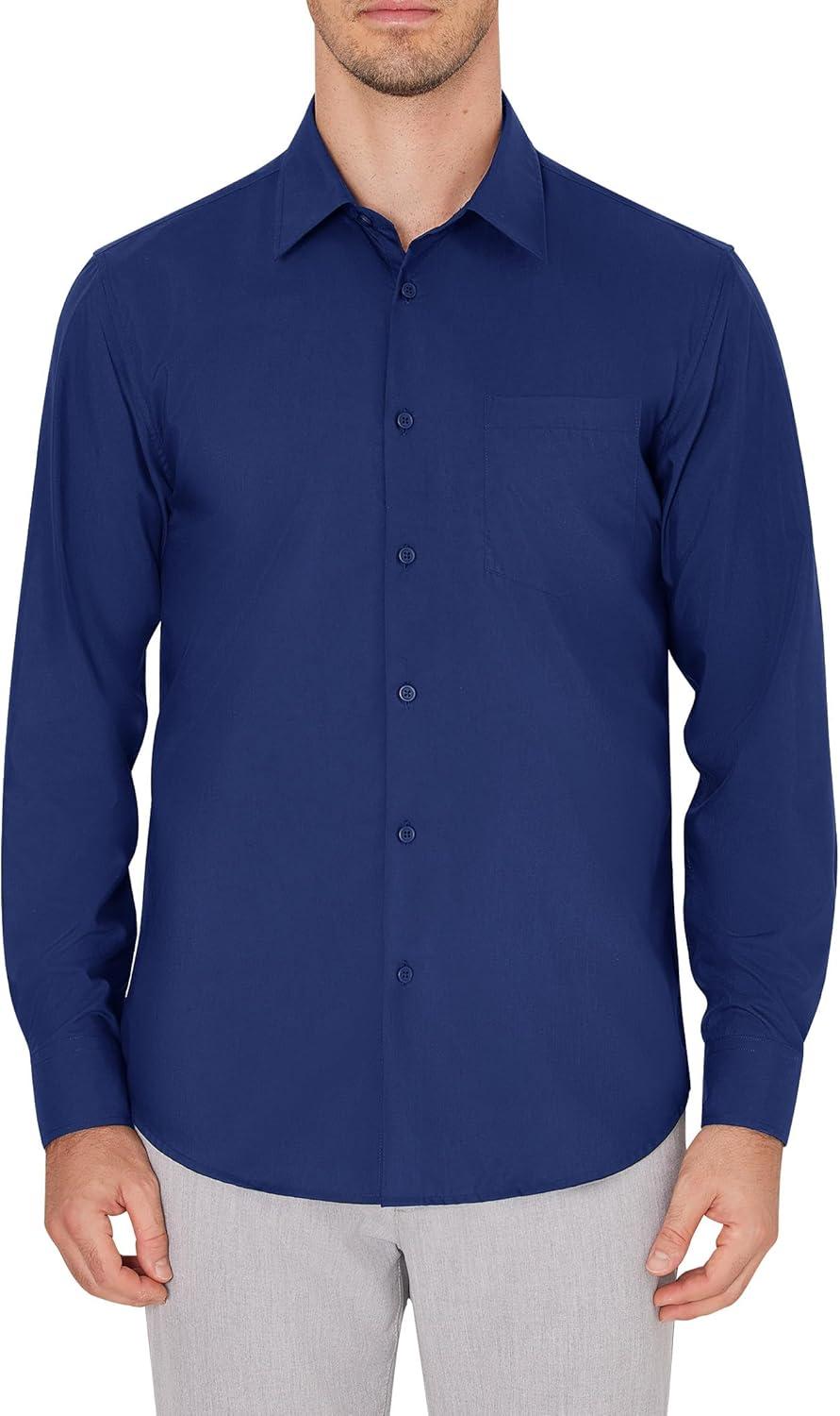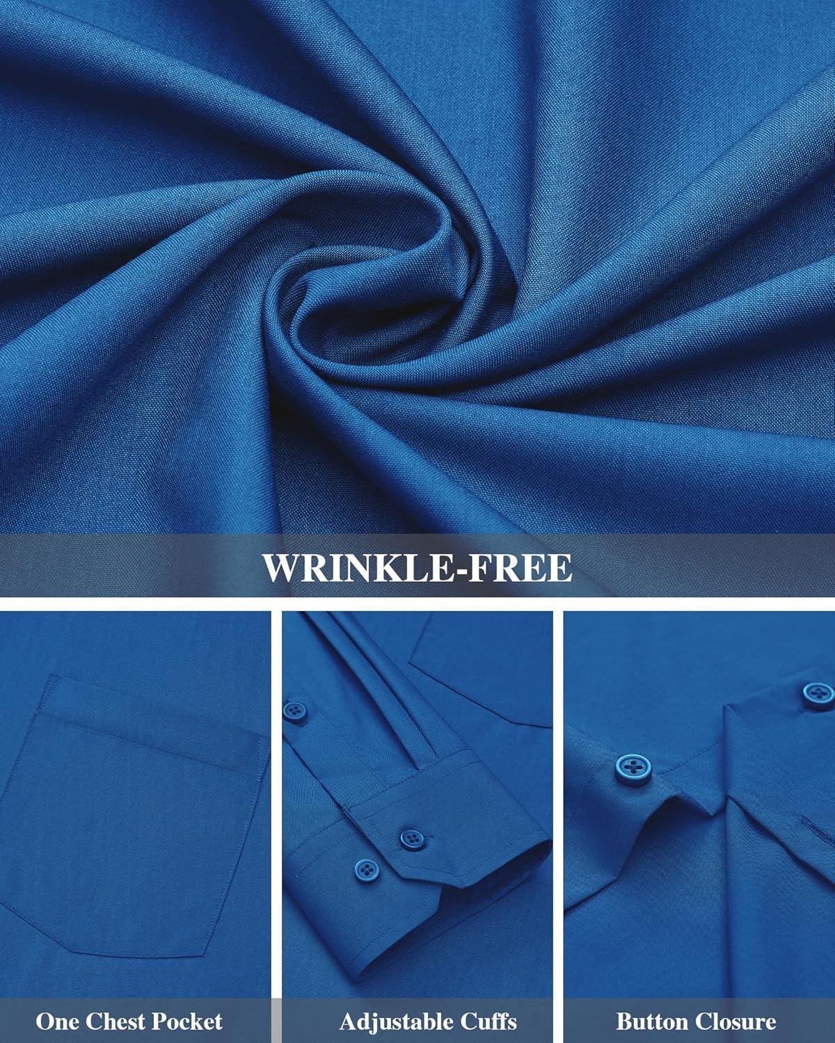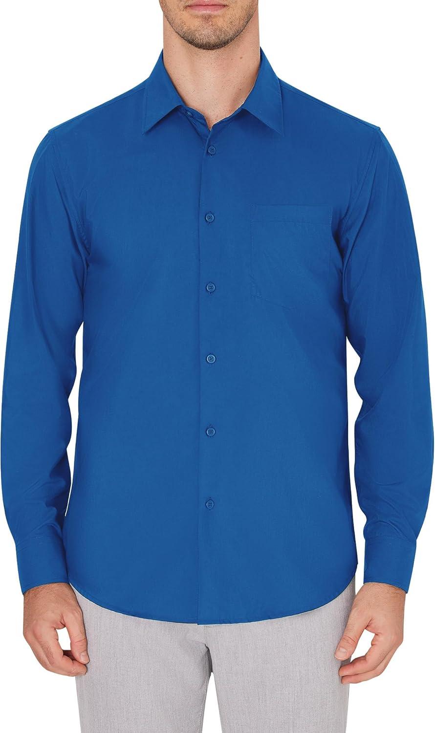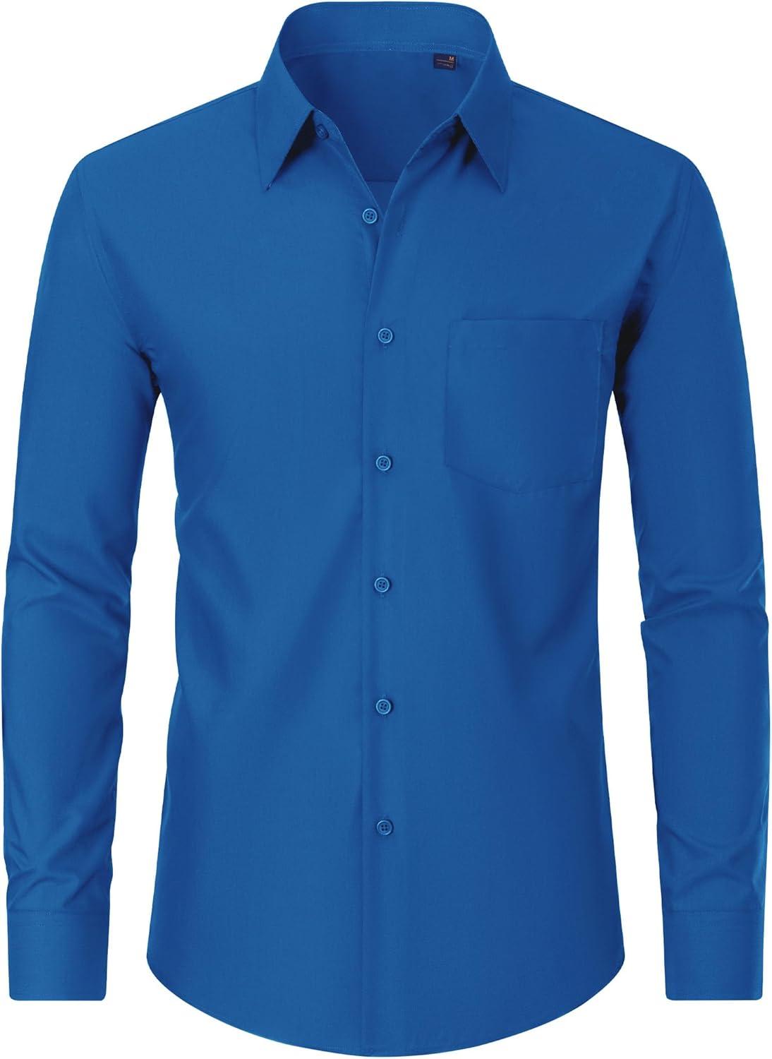 J.VER Men’s Dress Shirts Solid Long Sleeve Stretch Wrinkle-Free Formal Shirt Business Casual Button Down Shirts(Royal Blue)