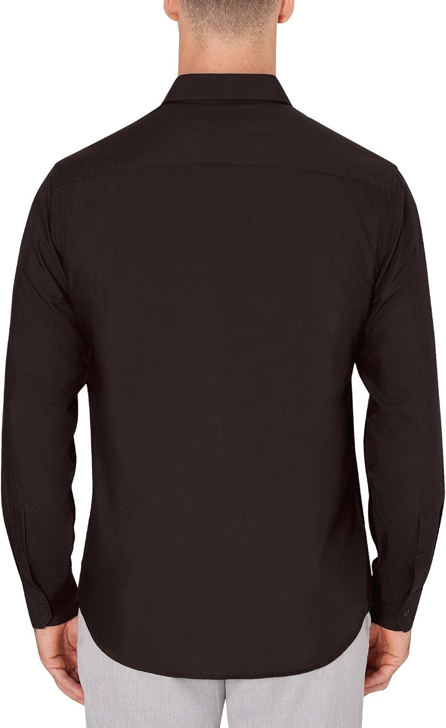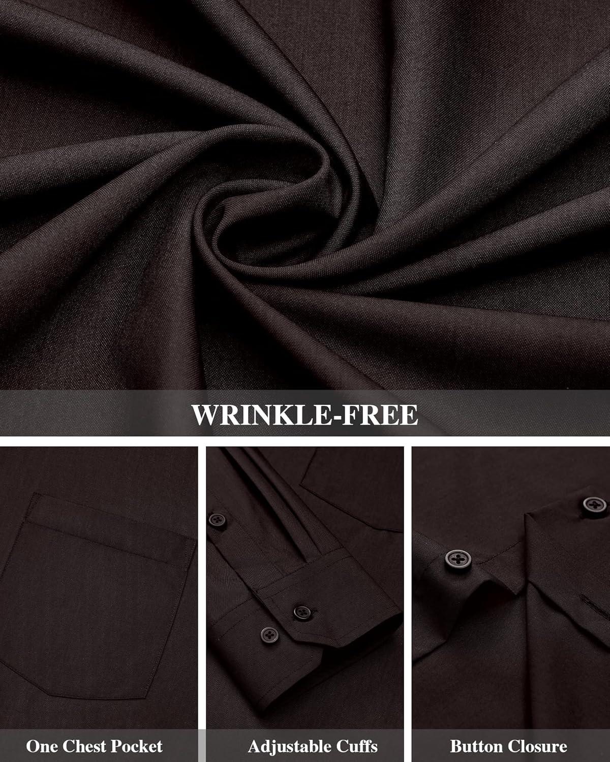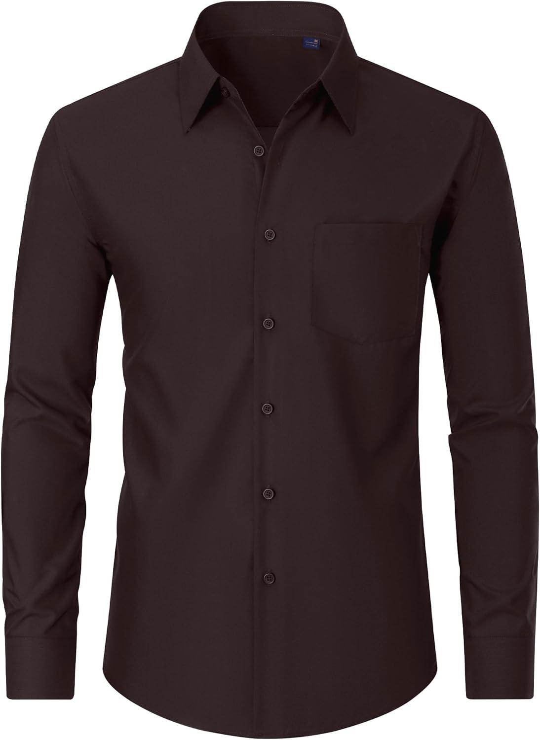 J.VER Men’s Dress Shirts Solid Long Sleeve Stretch Wrinkle-Free Formal Shirt Business Casual Button Down Shirts(Dark Brown)