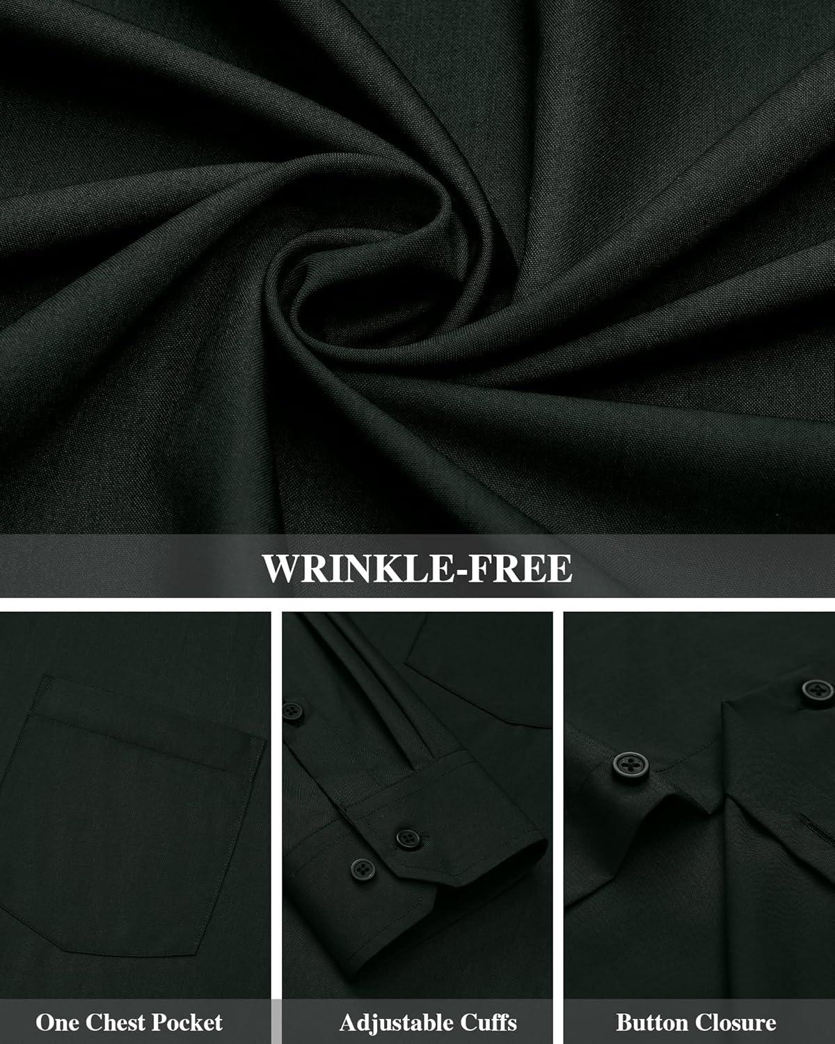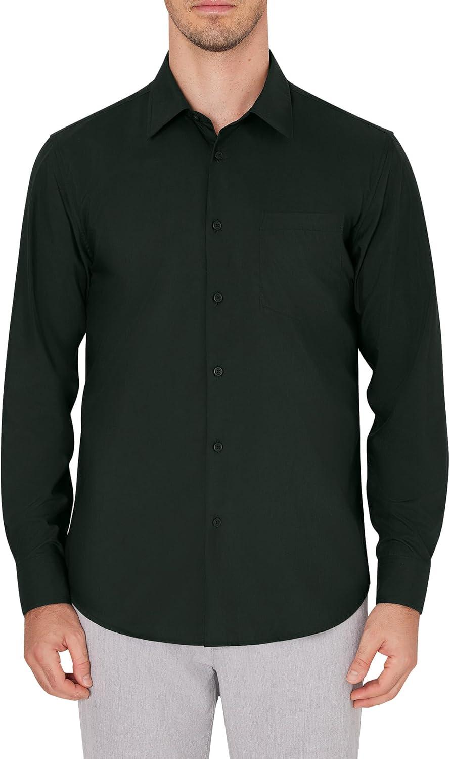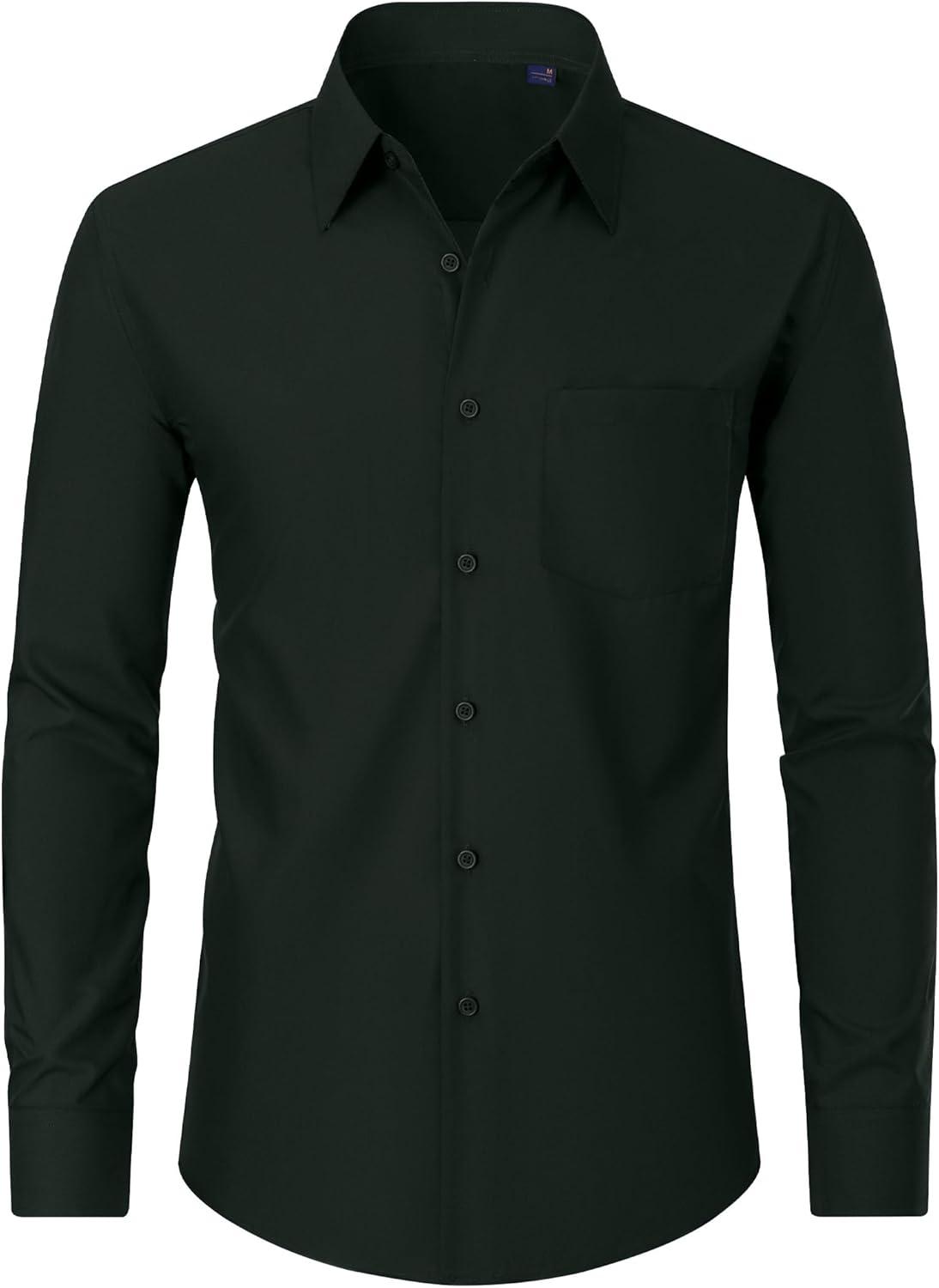 J.VER Men’s Dress Shirts Solid Long Sleeve Stretch Wrinkle-Free Formal Shirt Business Casual Button Down Shirts(Dark Green)