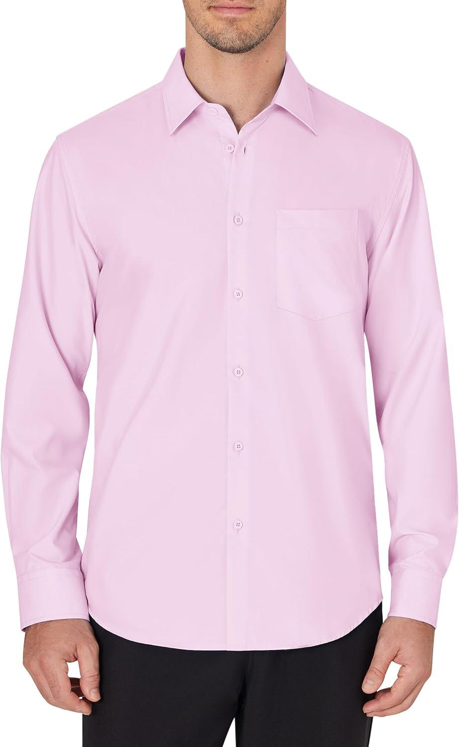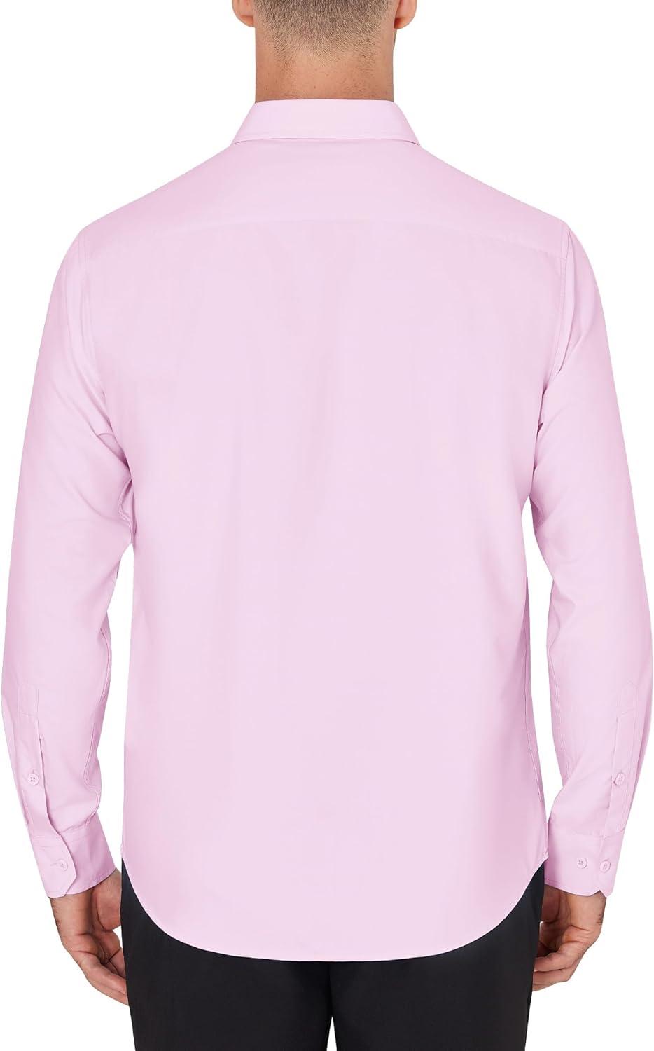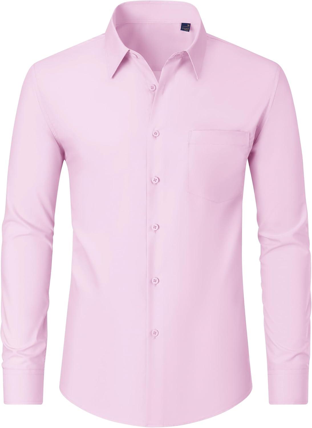 J.VER Men’s Dress Shirts Solid Long Sleeve Stretch Wrinkle-Free Formal Shirt Business Casual Button Down Shirts(Pink)