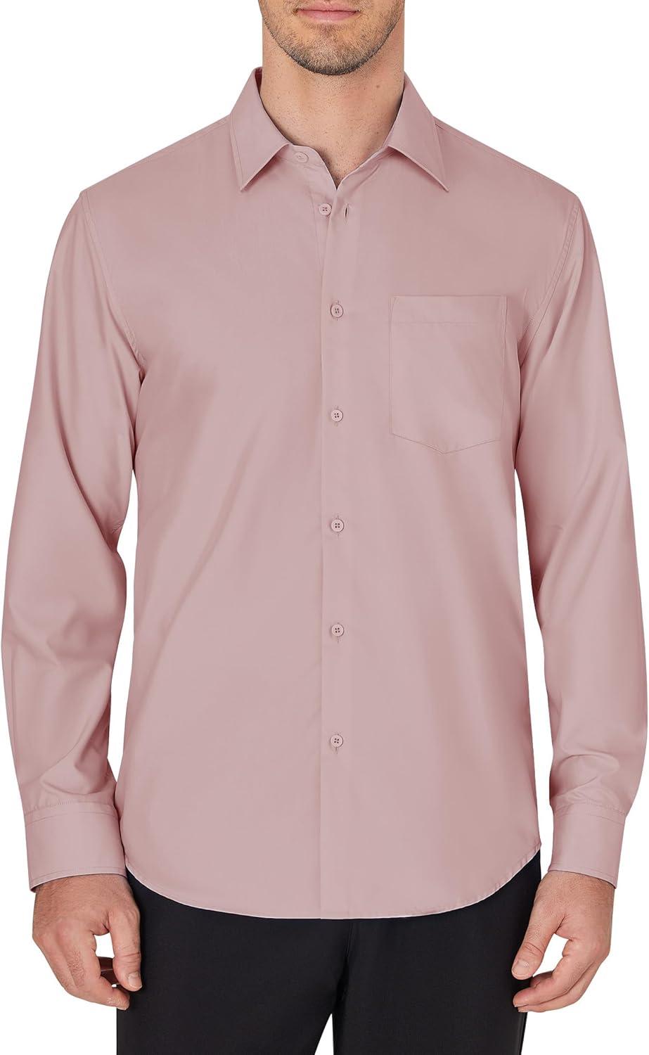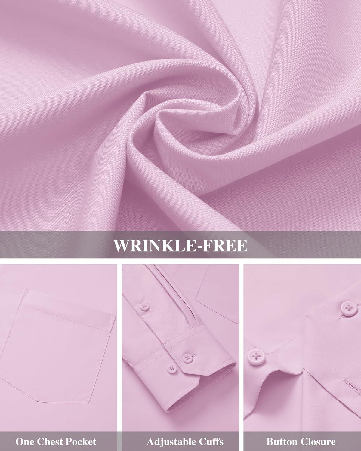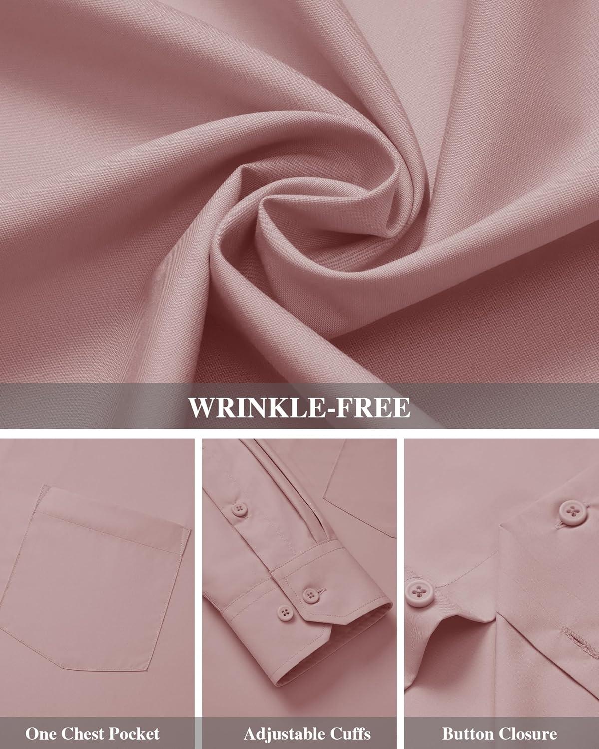 J.VER Men’s Dress Shirts Solid Long Sleeve Stretch Wrinkle-Free Formal Shirt Business Casual Button Down Shirts(Pink)