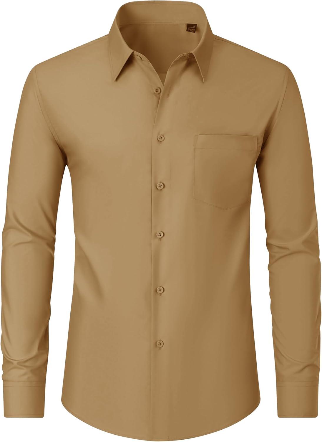 J.VER Men’s Dress Shirts Stretch Long Sleeve Formal Shirt Solid Business Casual Button Down Shirts for Wedding Prom(Tan)