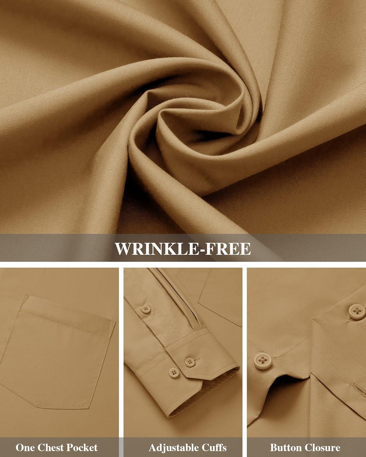 J.VER Men’s Dress Shirts Solid Long Sleeve Stretch Wrinkle-Free Formal Shirt Business Casual Button Down Shirts(Dark Khaki)