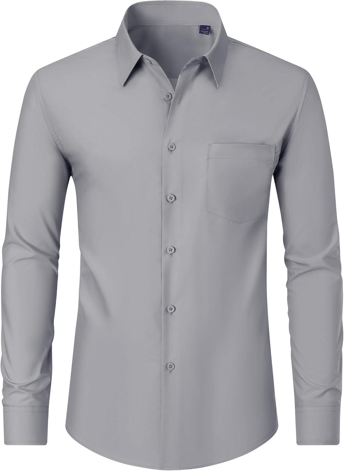 J.VER Men’s Dress Shirts Stretch Long Sleeve Formal Shirt Solid Business Casual Button Down Shirts for Wedding Prom(Grey)