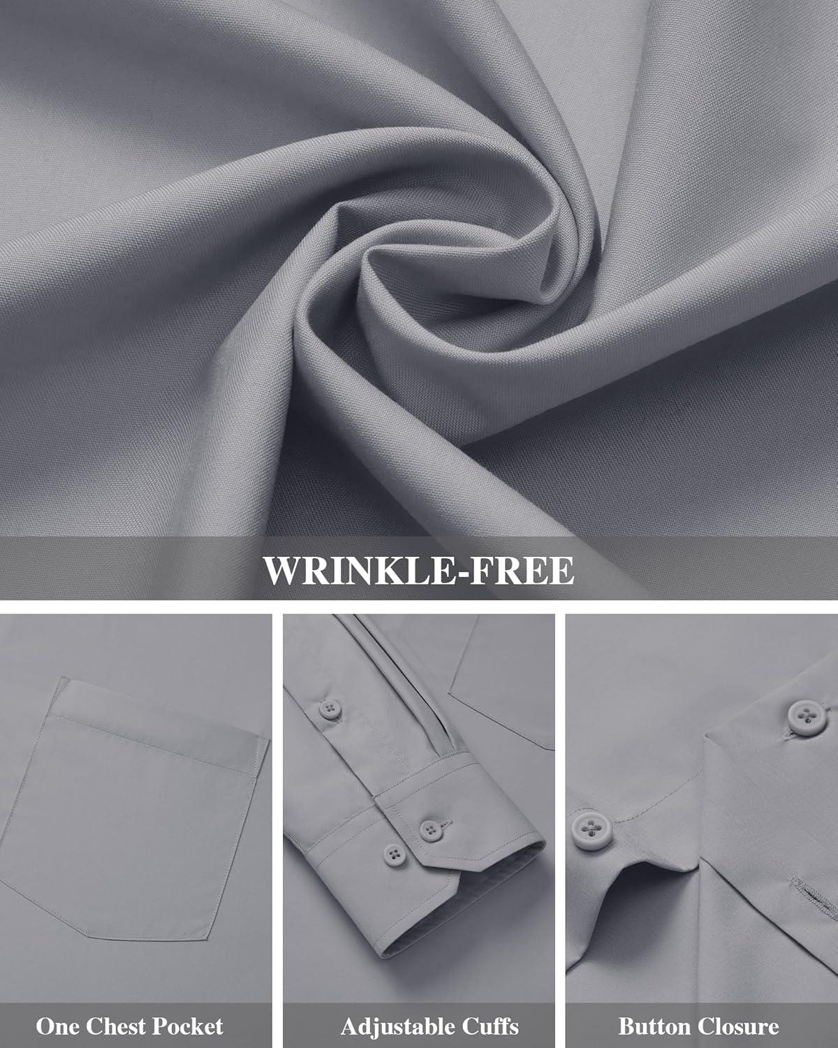 J.VER Men’s Dress Shirts Solid Long Sleeve Stretch Wrinkle-Free Formal Shirt Business Casual Button Down Shirts(Grey)