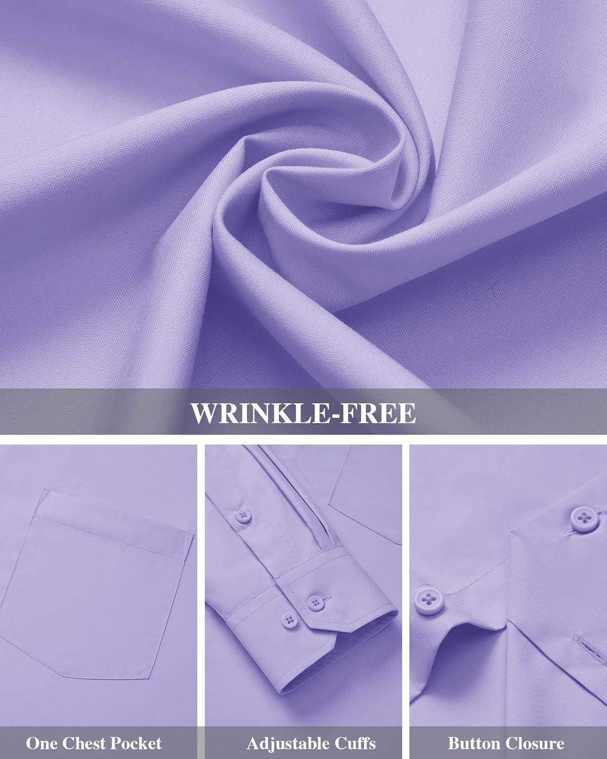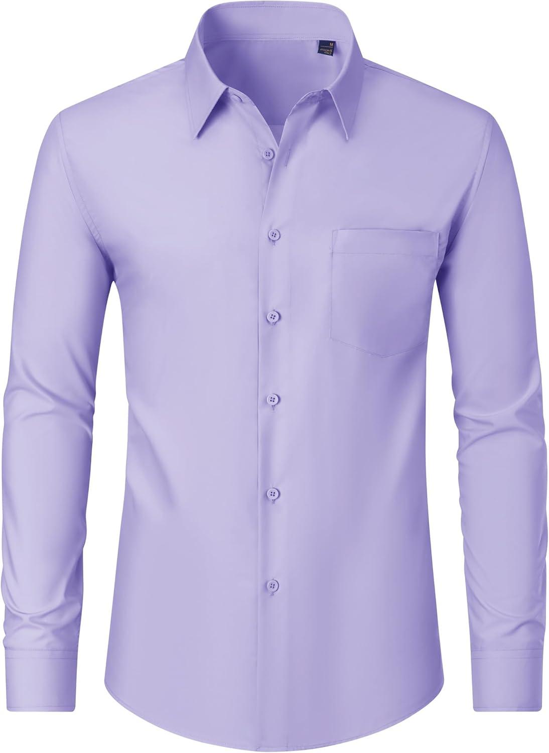 J.VER Men’s Dress Shirts Solid Long Sleeve Stretch Wrinkle-Free Formal Shirt Business Casual Button Down Shirts(Lavender Purple)