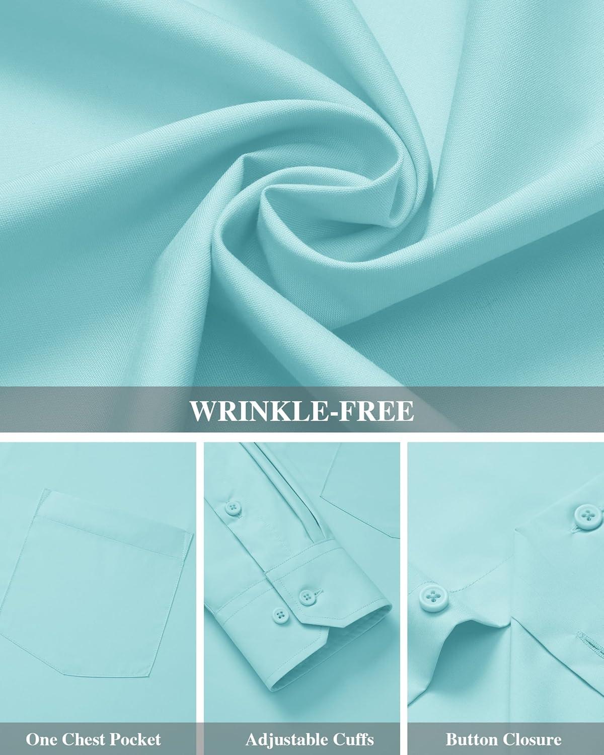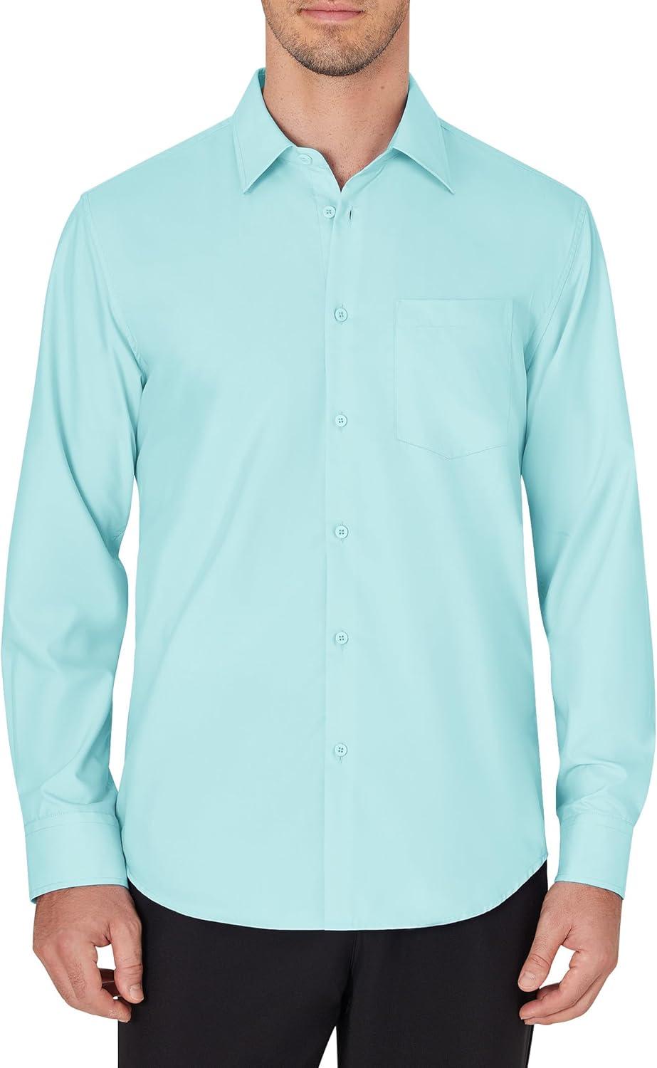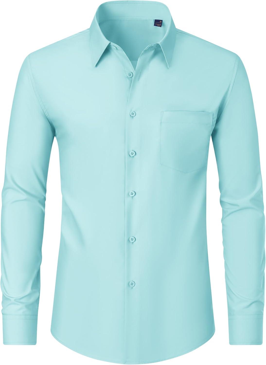 J.VER Men’s Dress Shirts Solid Long Sleeve Stretch Wrinkle-Free Formal Shirt Business Casual Button Down Shirts(Teal)