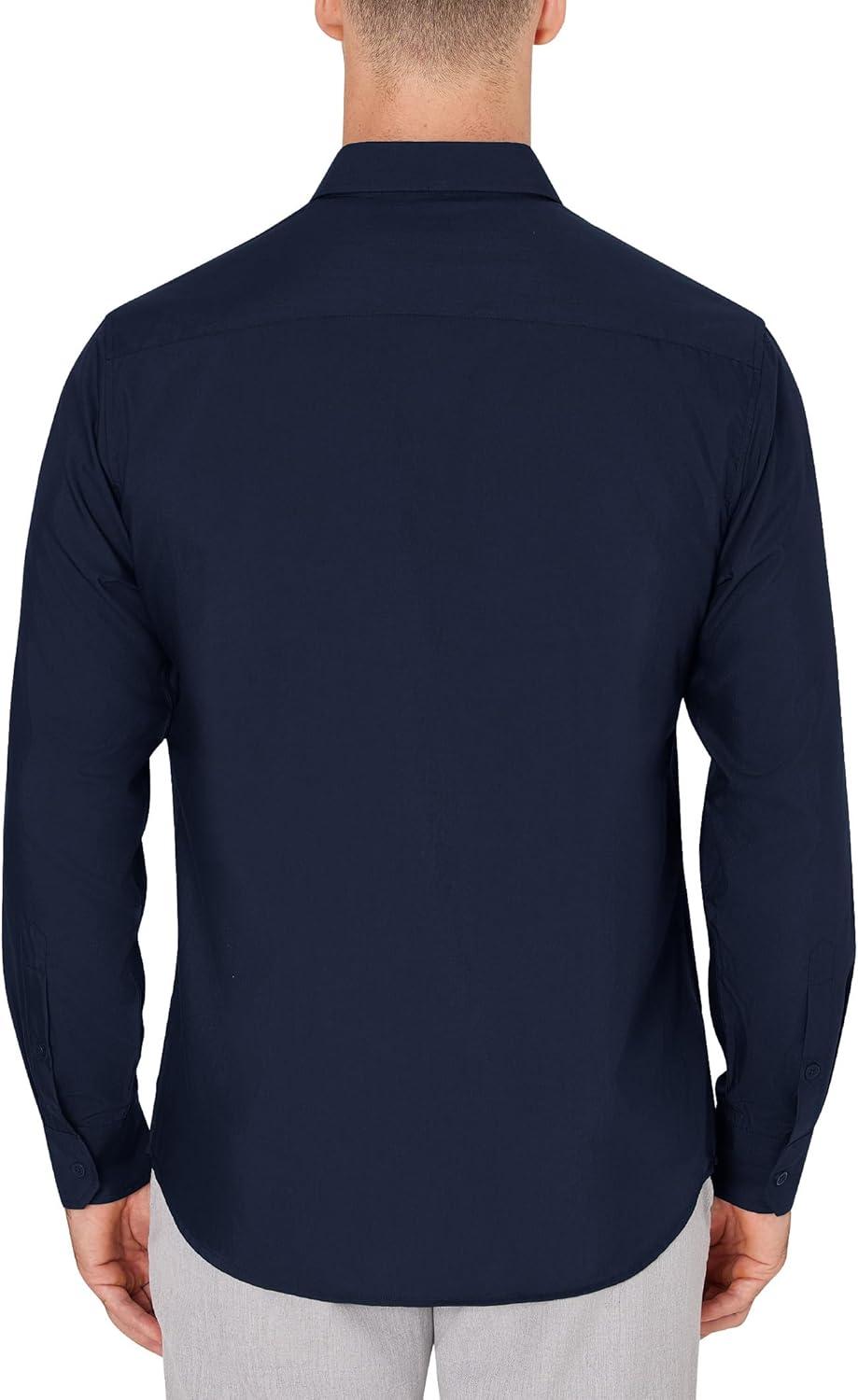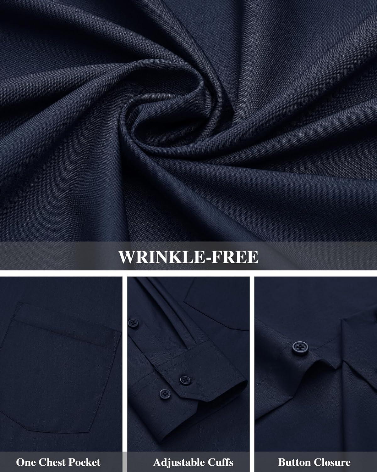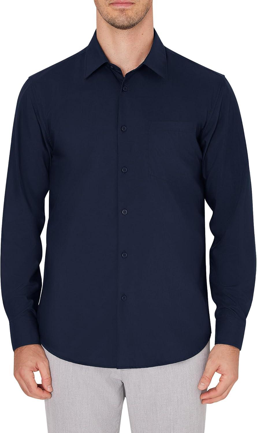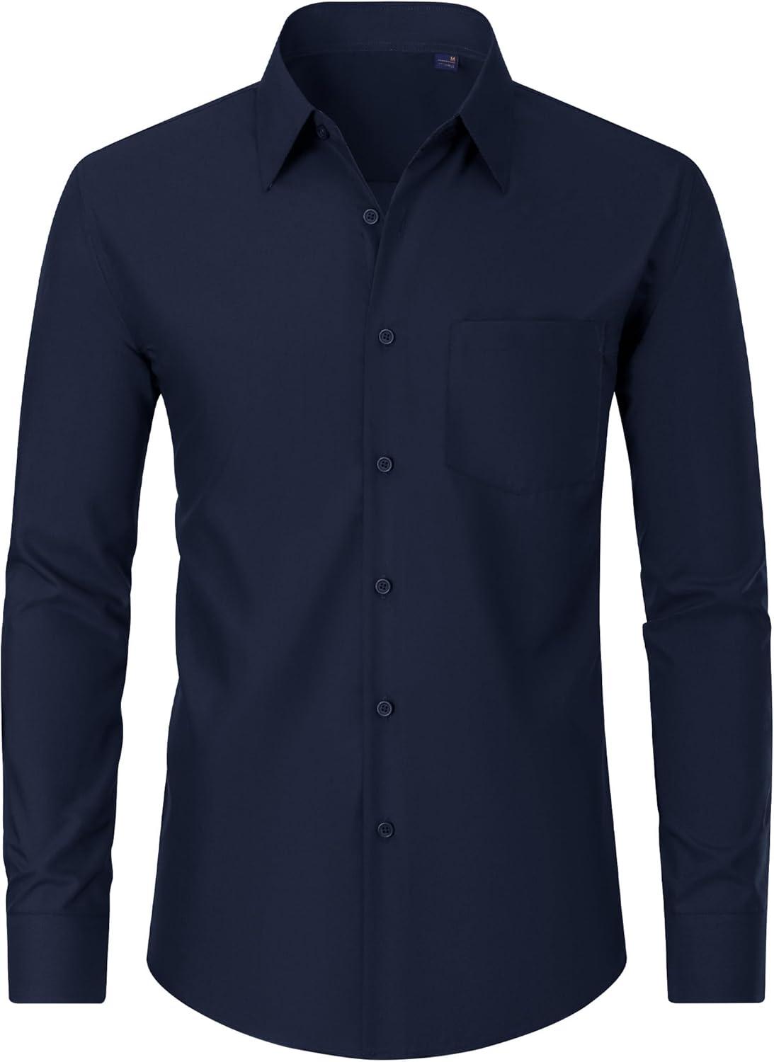 J.VER Men’s Dress Shirts Solid Long Sleeve Stretch Wrinkle-Free Formal Shirt Business Casual Button Down Shirts(Navy Blue)
