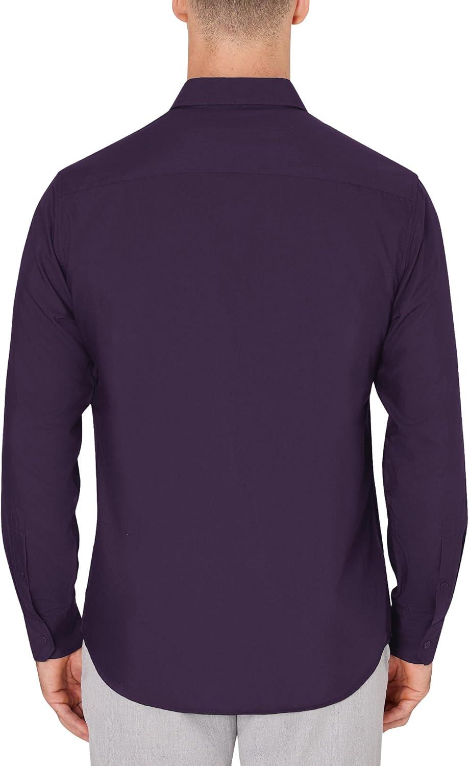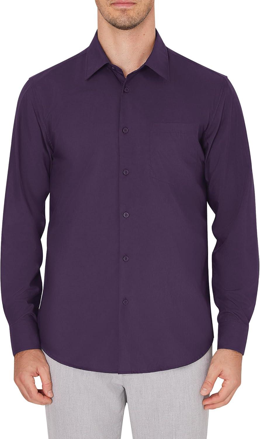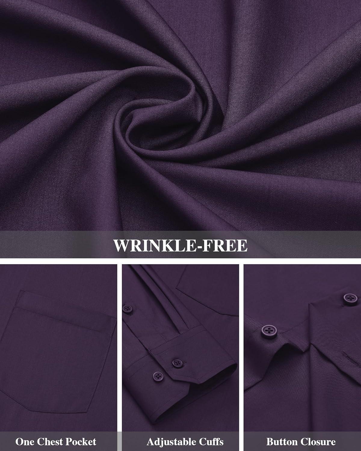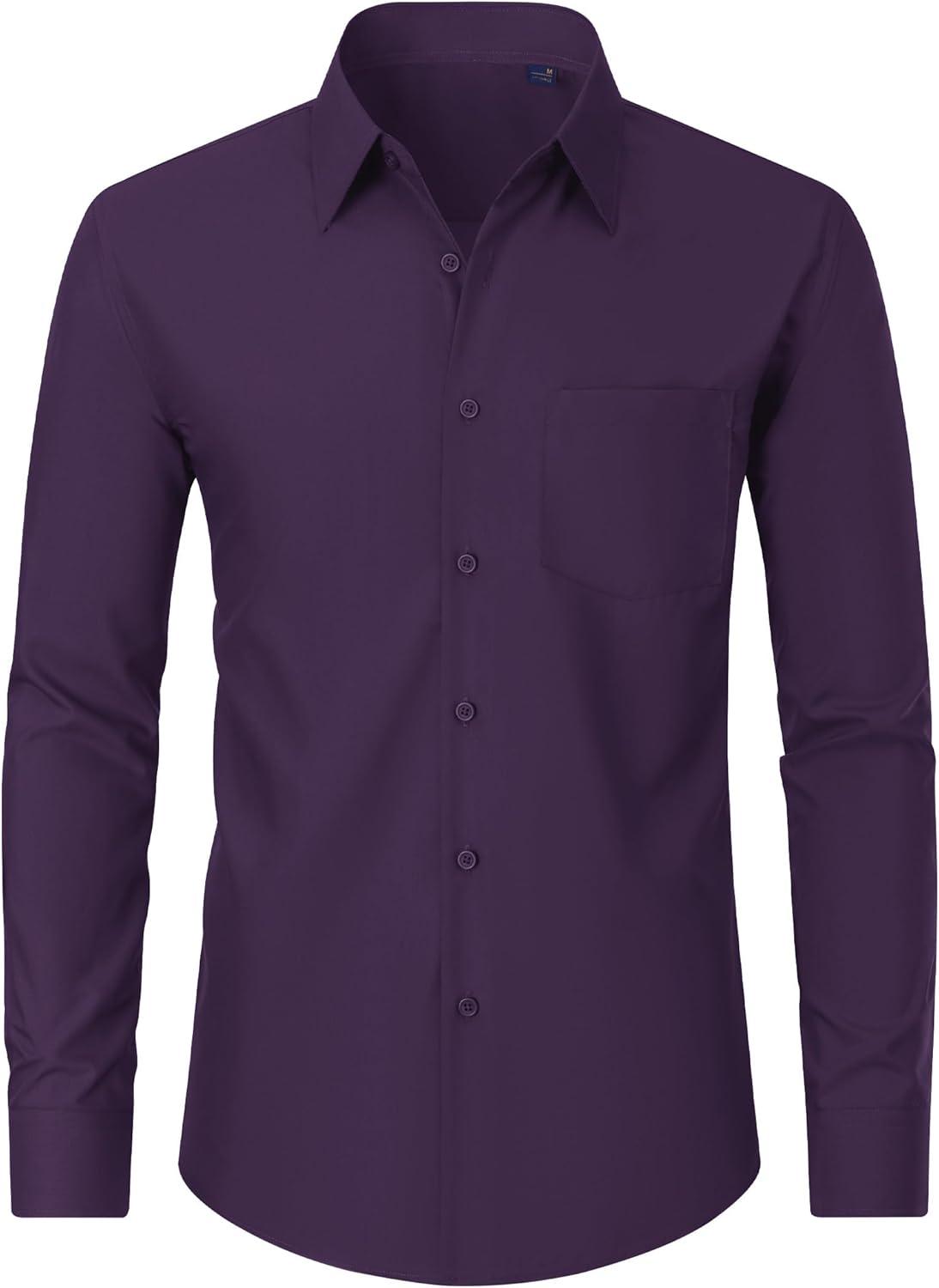 J.VER Men’s Dress Shirts Solid Long Sleeve Stretch Wrinkle-Free Formal Shirt Business Casual Button Down Shirts(Purple)