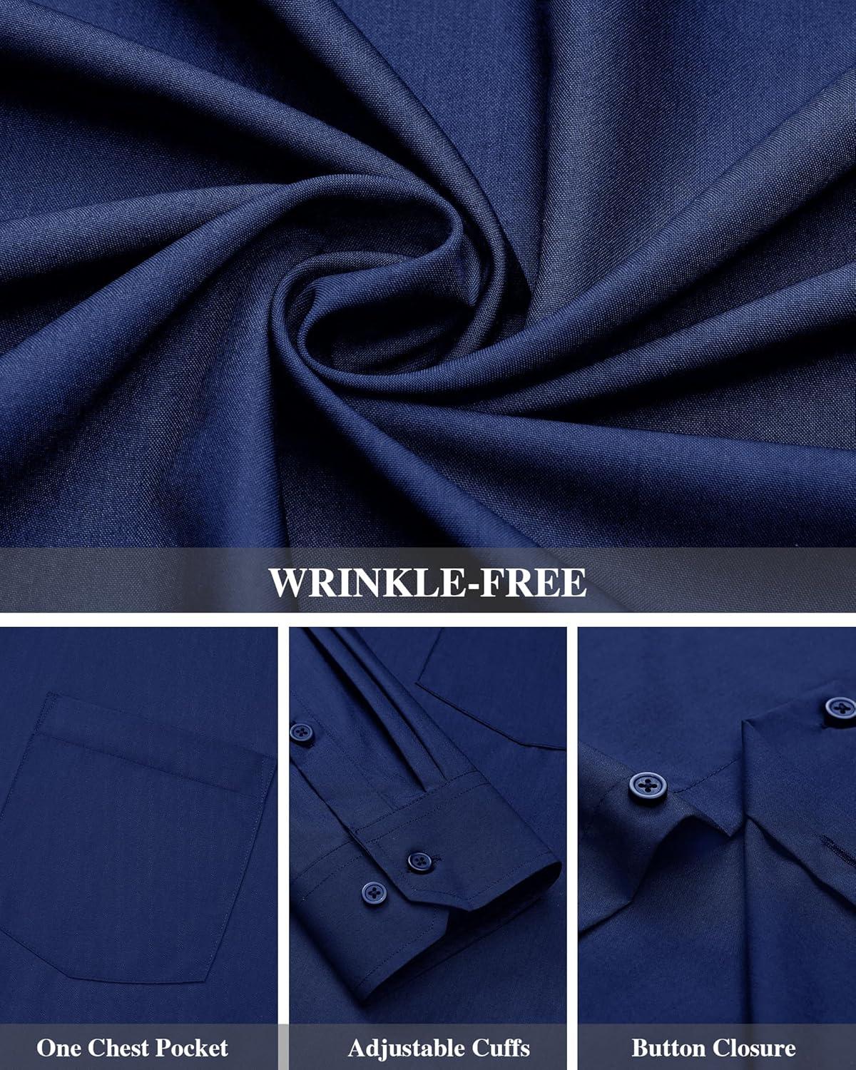 J.VER Men’s Dress Shirts Solid Long Sleeve Stretch Wrinkle-Free Formal Shirt Business Casual Button Down Shirts(Dark-blue)