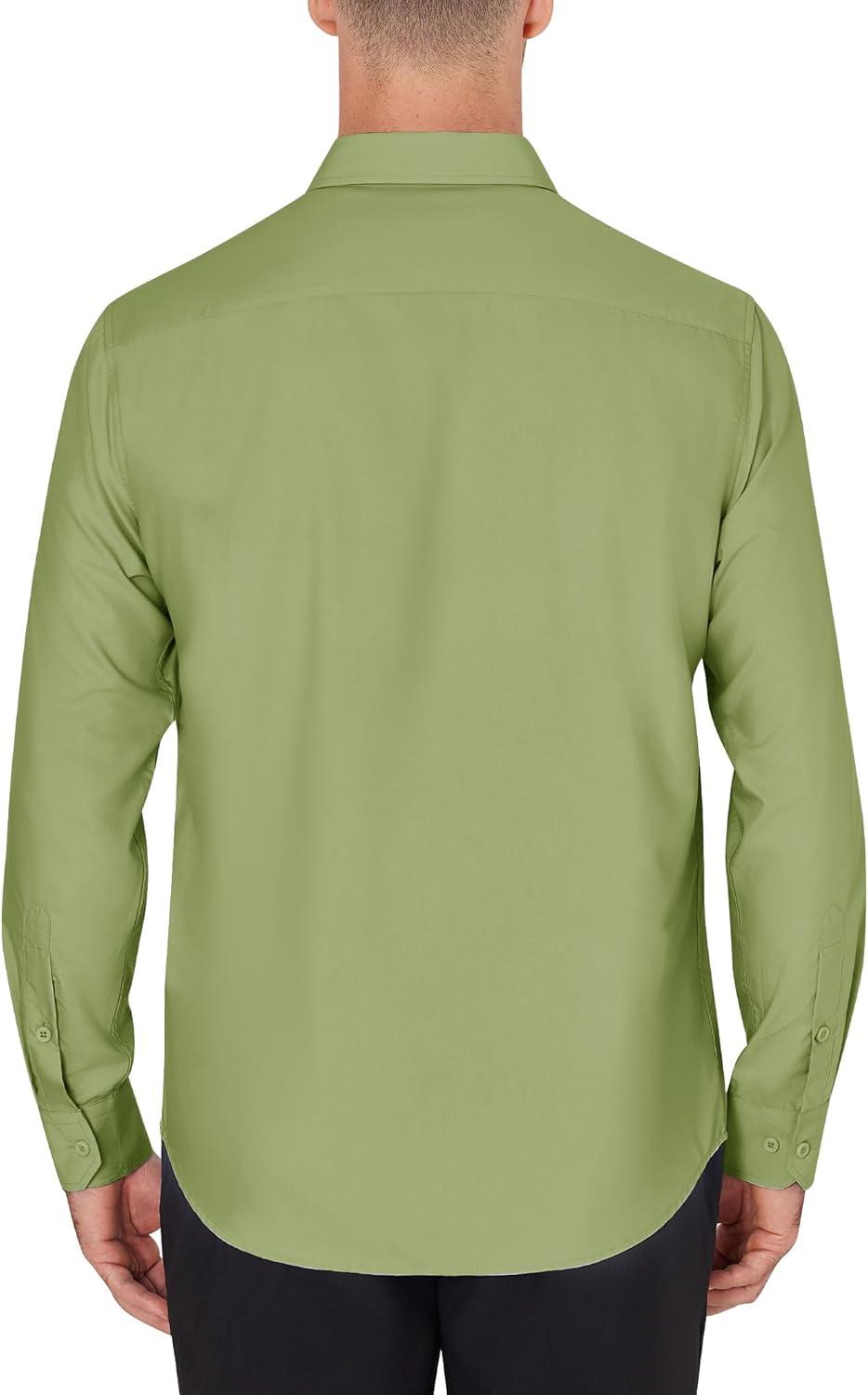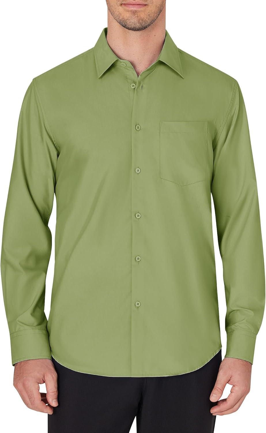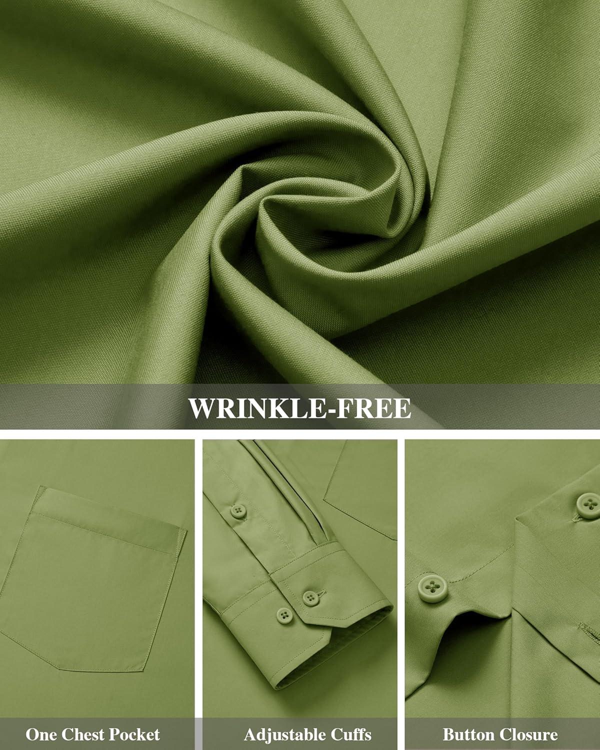 J.VER Men’s Dress Shirts Solid Long Sleeve Stretch Wrinkle-Free Formal Shirt Business Casual Button Down Shirts(Army Green)