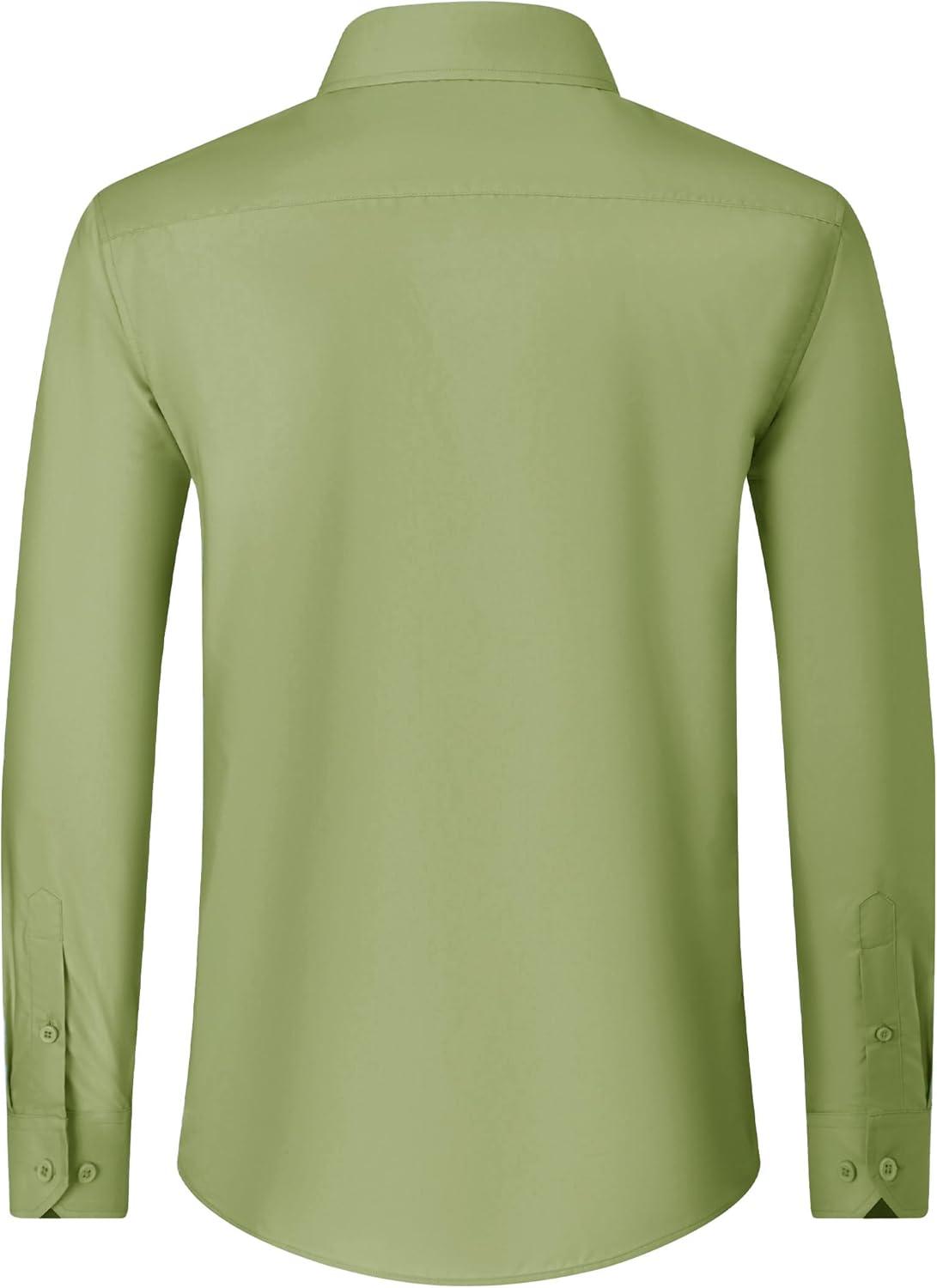J.VER Men’s Dress Shirts Stretch Long Sleeve Formal Shirt Solid Business Casual Button Down Shirts for Wedding Prom(Green)