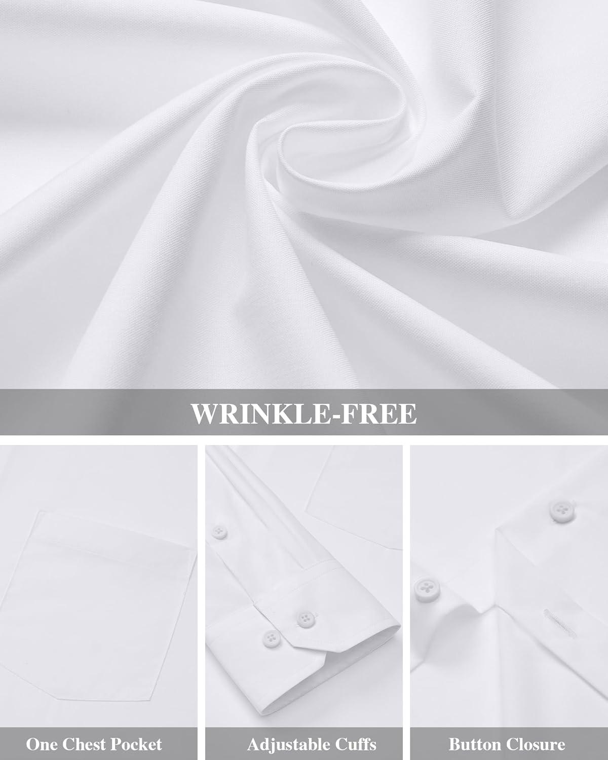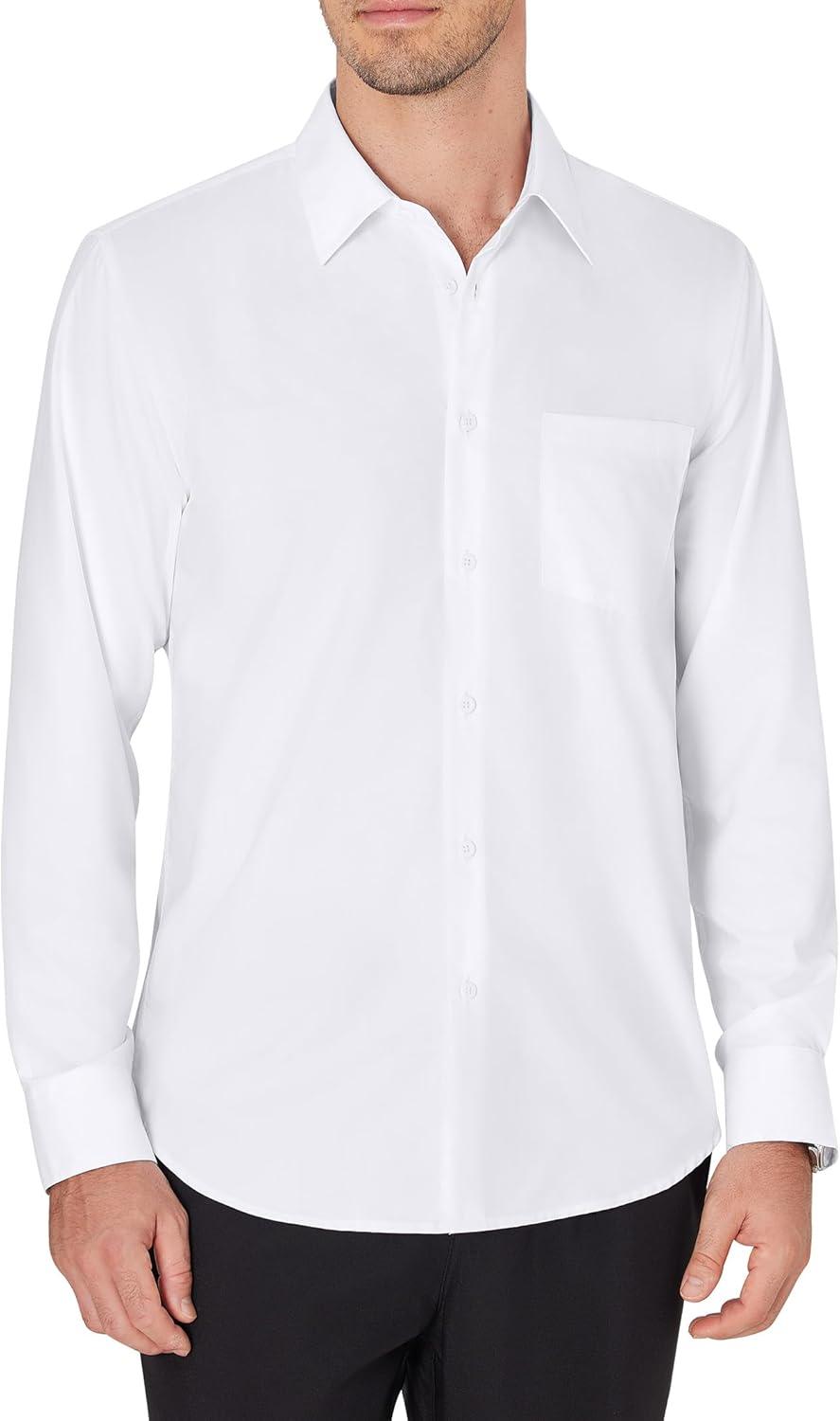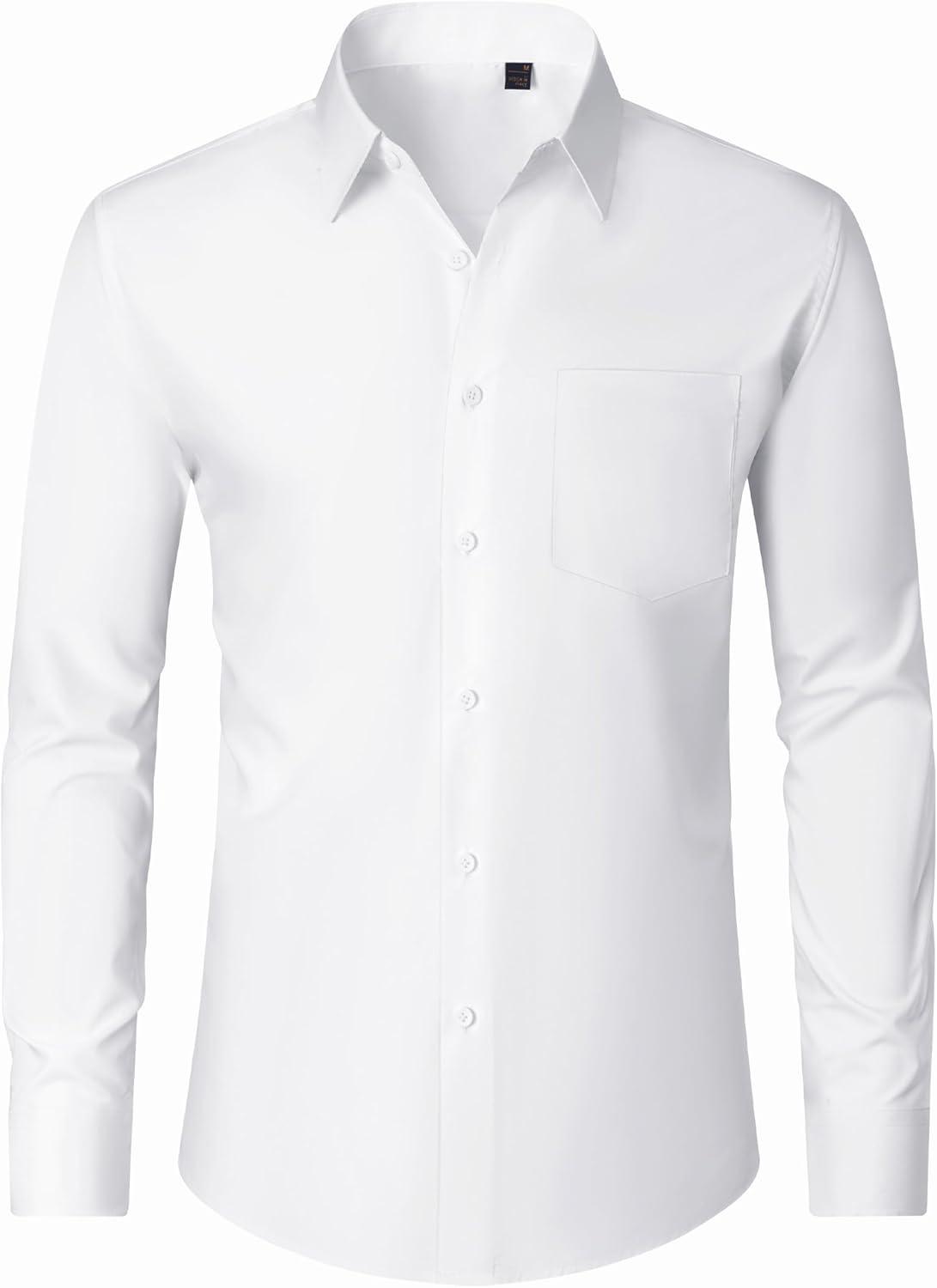 J.VER Men’s Dress Shirts Stretch Long Sleeve Formal Shirt Solid Business Casual Button Down Shirts for Wedding Prom(Solid White)