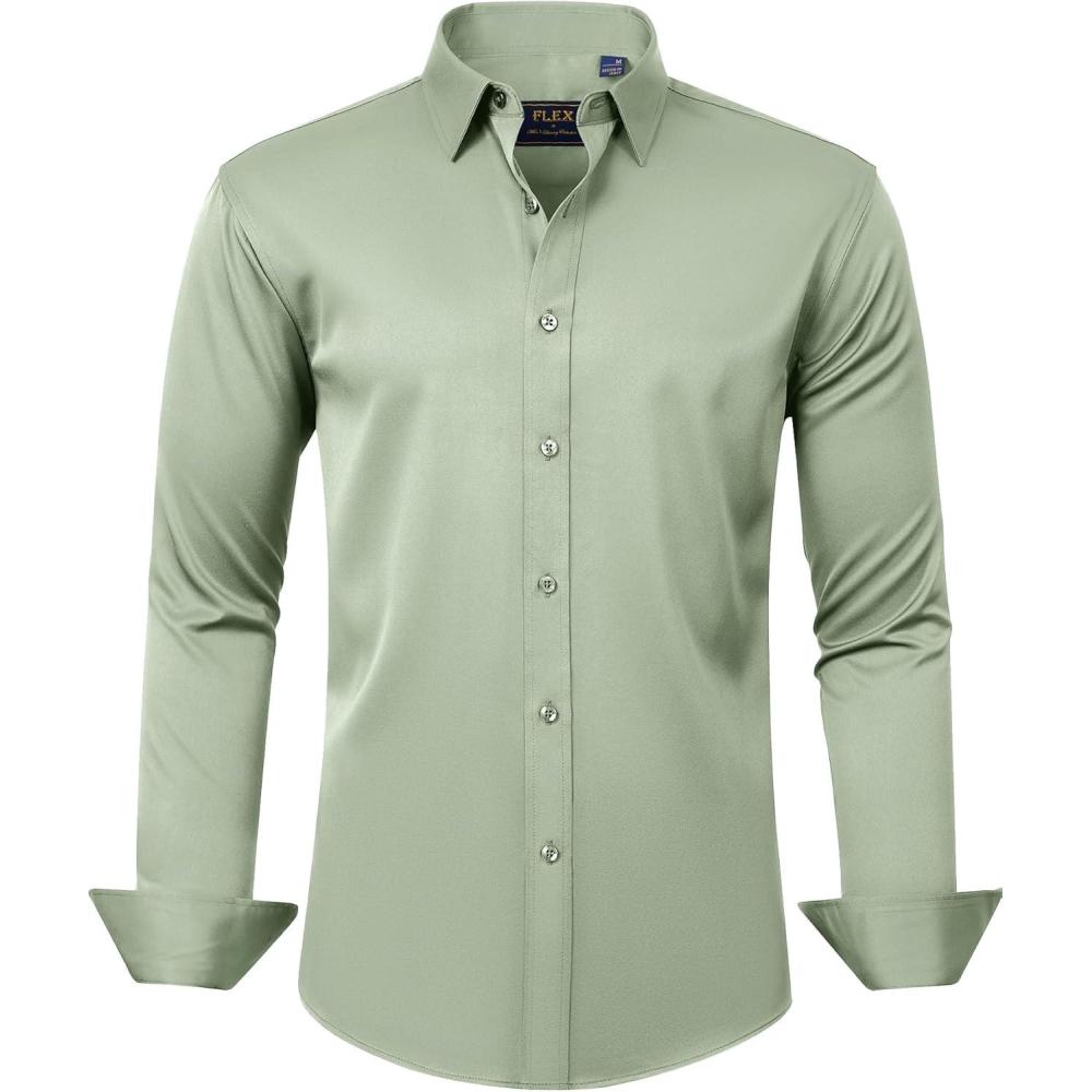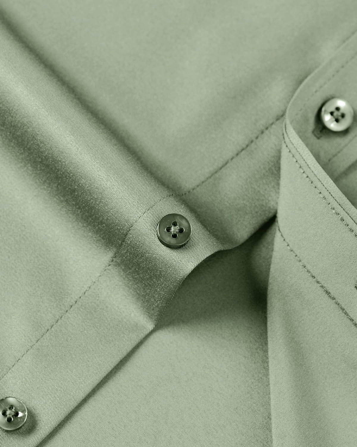 J.VER Boy’s Long Sleeve Dress Shirts Solid Stretch Wrinkle-Free Shirt Kids Casual Button Down Shirts School Uniform(Sage Green)