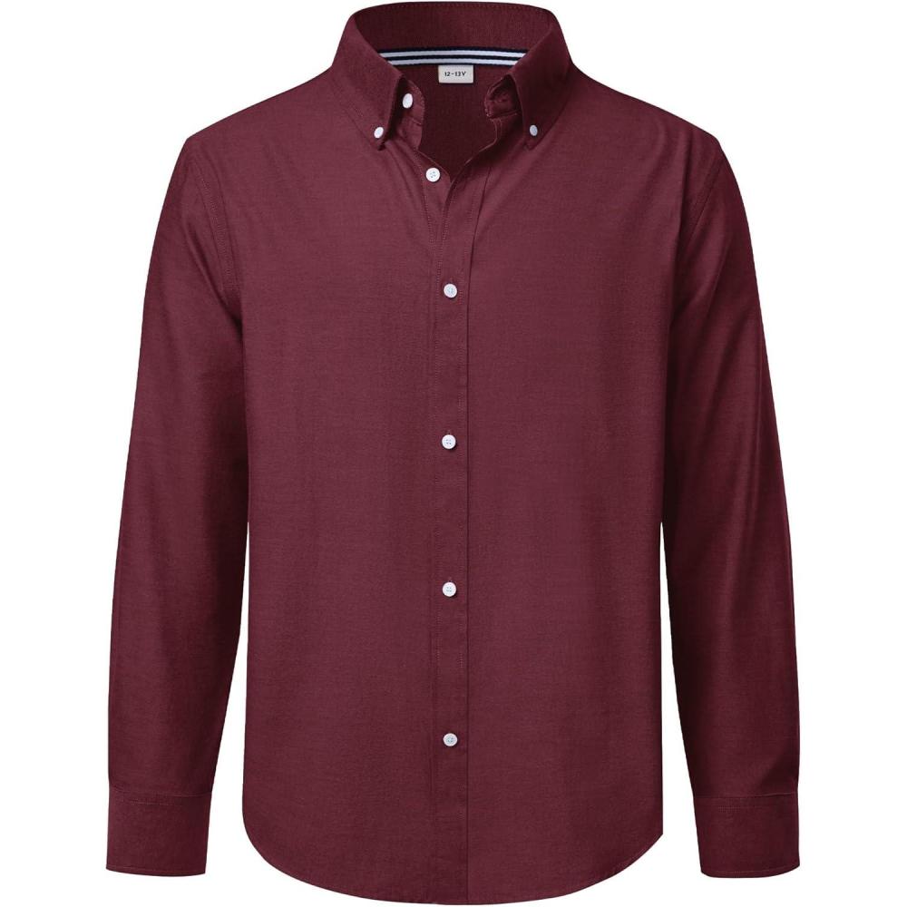 J.VER Boy’s Long Sleeve Oxford Dress Shirts Solid Casual Button Down Collar Shirt Kids Formal Uniform Tops(Burgundy)