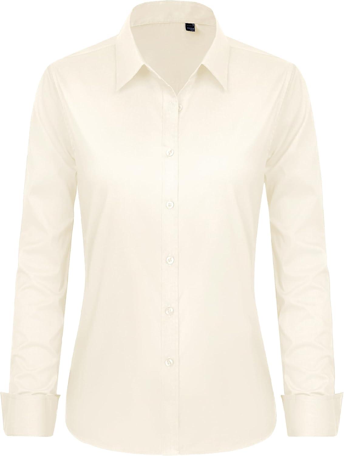 J.VER Button Down Shirts for Women Stretch Collared Cotton Long Sleeve Dress Shirt Business Casual Blouse for Work(Beige)