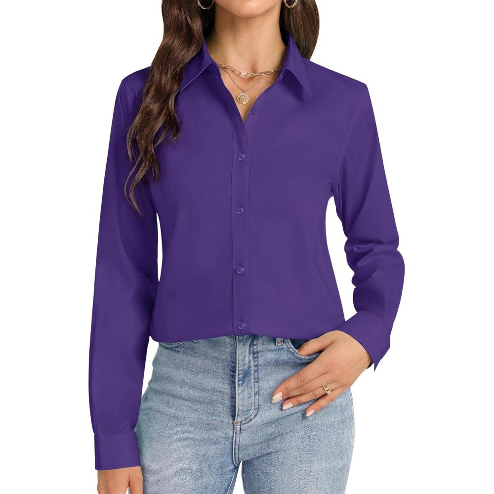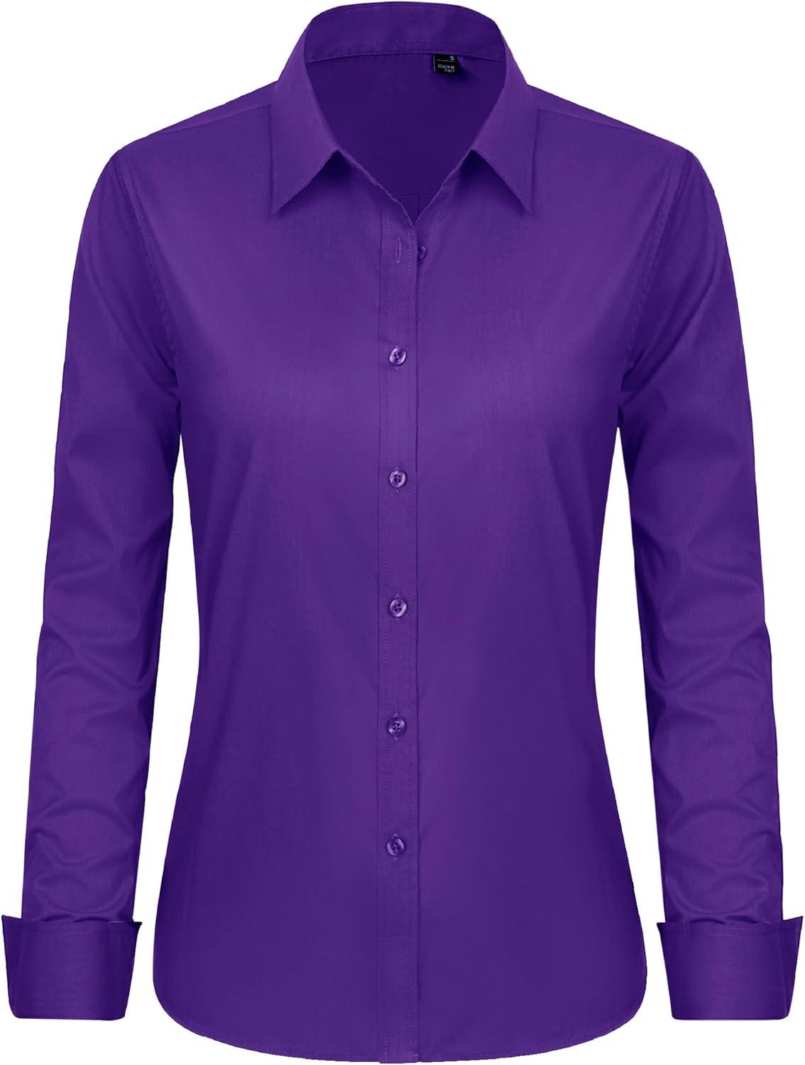 J.VER Button Down Shirts for Women Stretch Collared Cotton Long Sleeve Dress Shirt Business Casual Blouse for Work(Dark Purple)