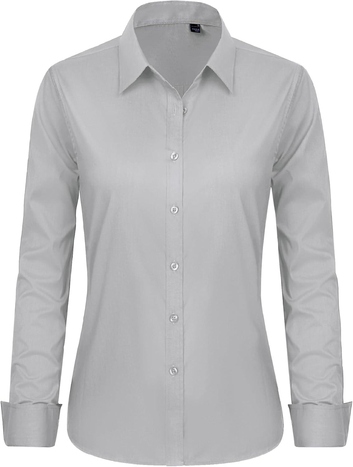 J.VER Button Down Shirts for Women Stretch Collared Cotton Long Sleeve Dress Shirt Business Casual Blouse for Work(Light Grey)