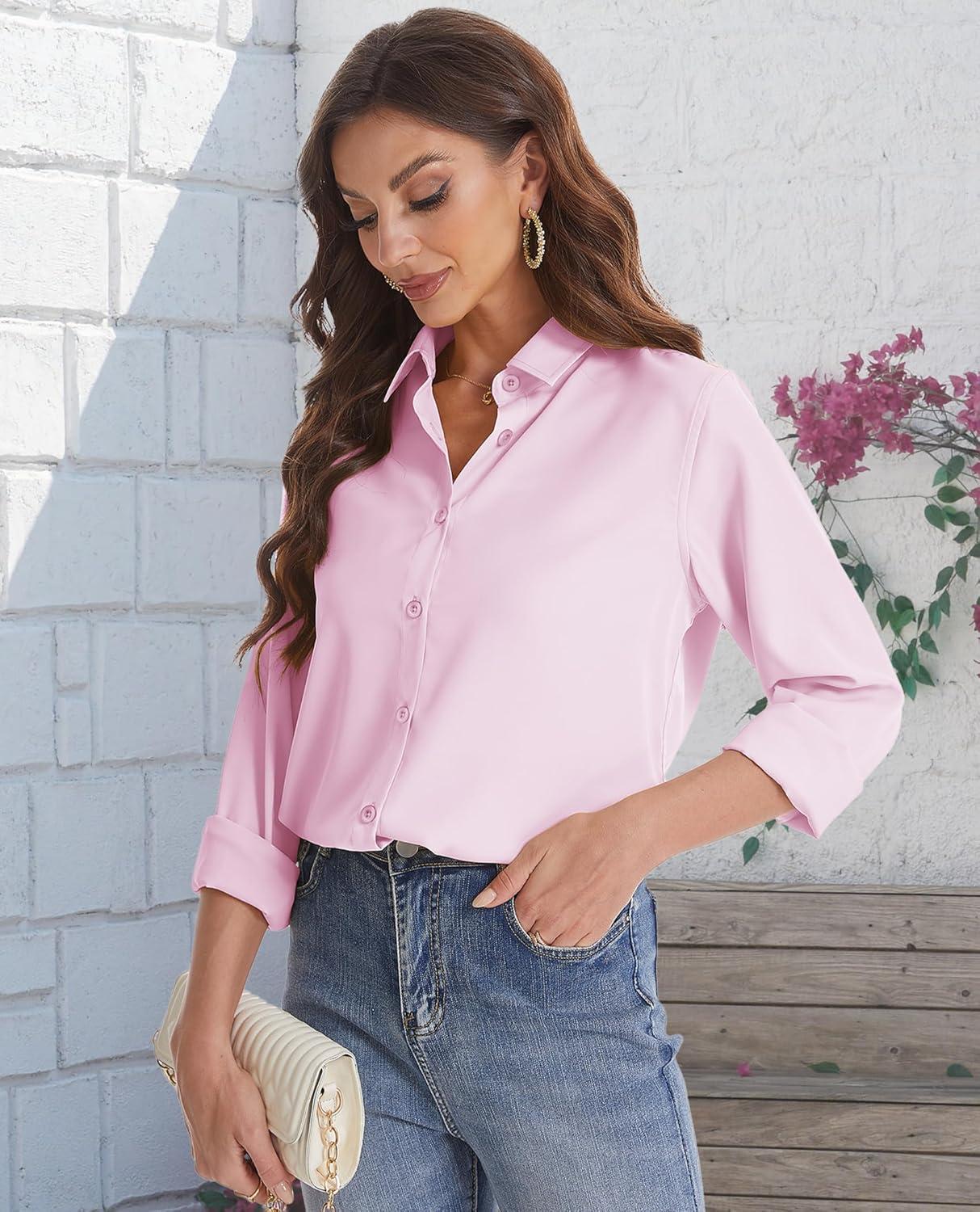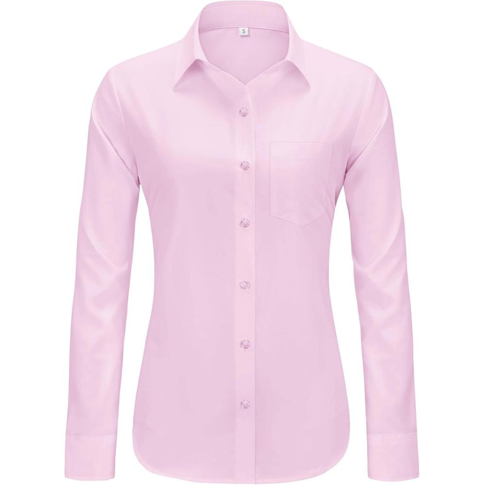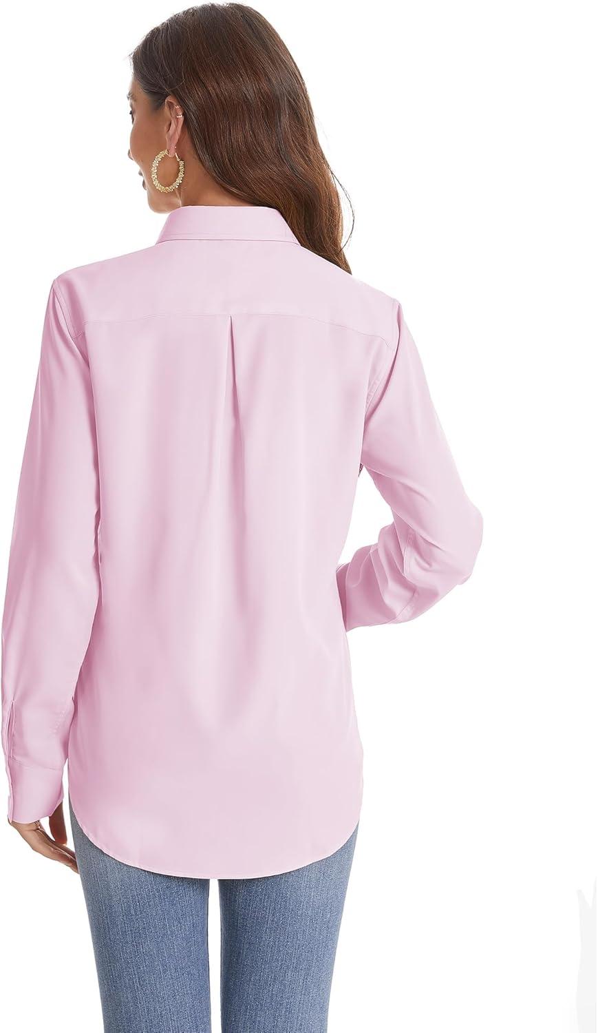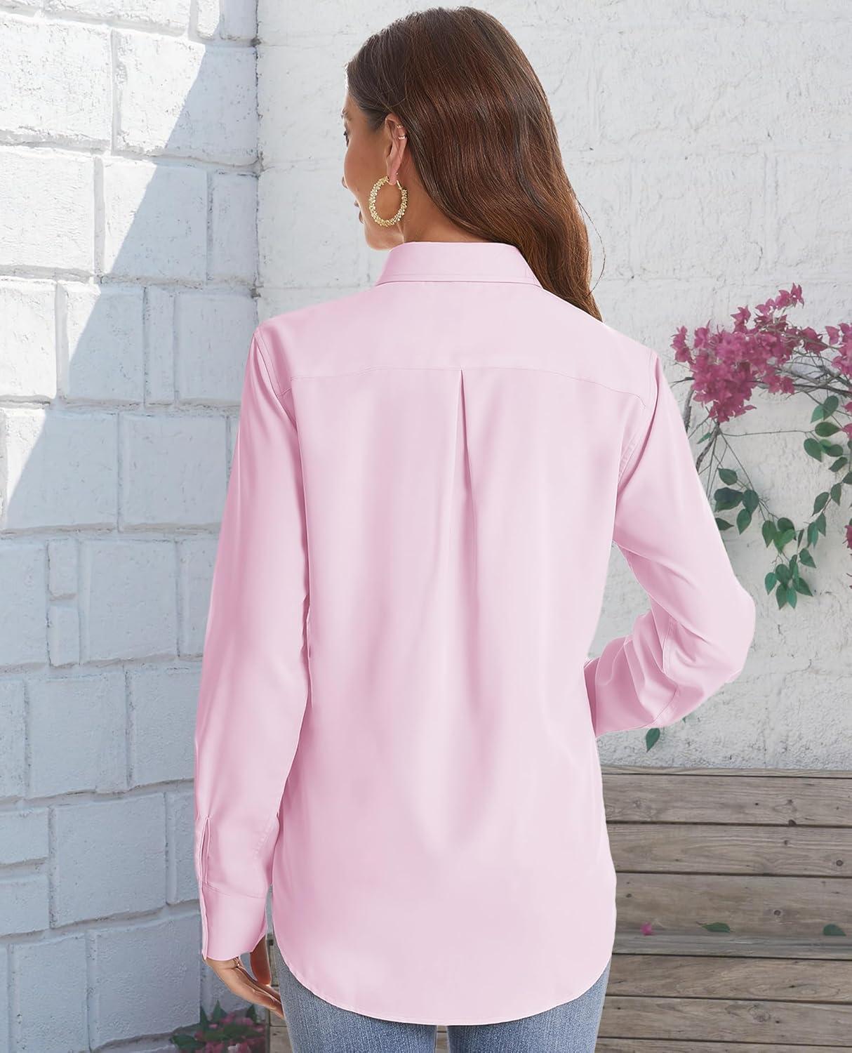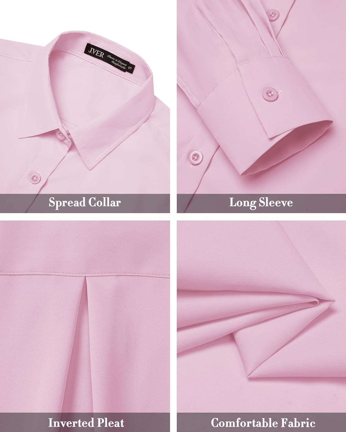 J.VER Button Down Shirts for Women Wrinkle Free Long Sleeve Dress Shirt Business Casual Work Blouse with Pocket(Pink)