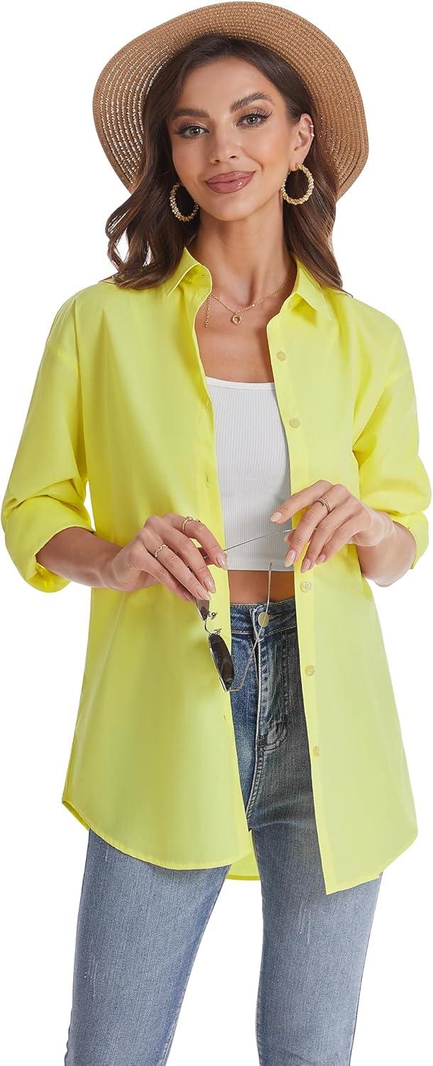 This solid button down shirt match with trousers, shorts, jeans, cropped pants, tight, leggings, skirts, skorts, It is suitable for both formal look or casual look in fall, spring, winter and summer
