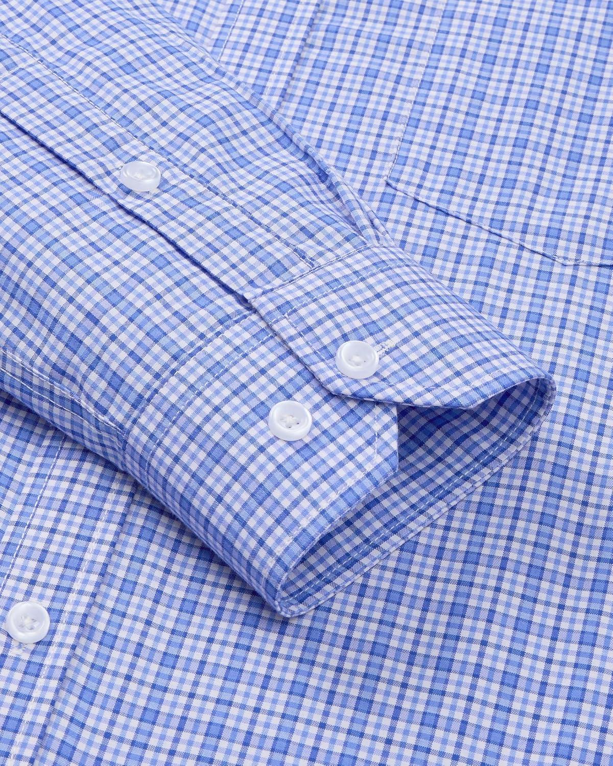 J.VER Dress Shirts for Men Cotton Long Sleeve Button Down Shirt Business Casual Classic Plaid Tops with Pocket(Blue Gingham)