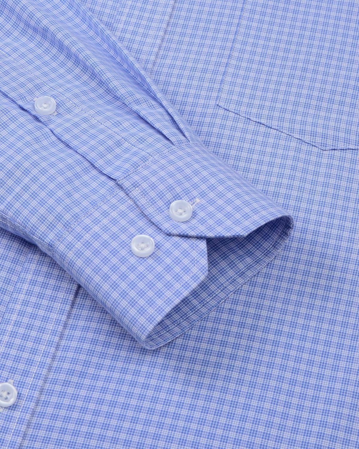 J.VER Dress Shirts for Men Cotton Long Sleeve Button Down Shirt Business Casual Classic Plaid Tops with Pocket(Dark Blue Gingham)