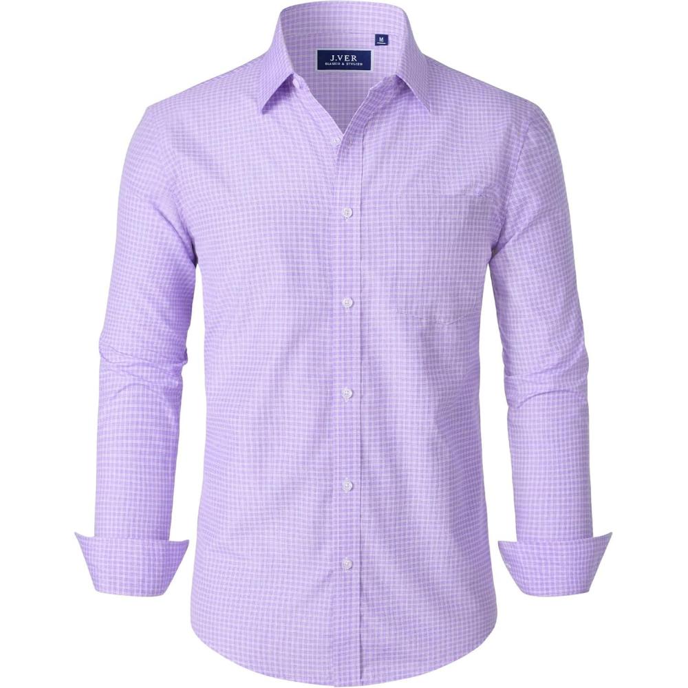 J.VER Dress Shirts for Men Cotton Long Sleeve Button Down Shirt Business Casual Classic Plaid Tops with Pocket(Purple Gingham)
